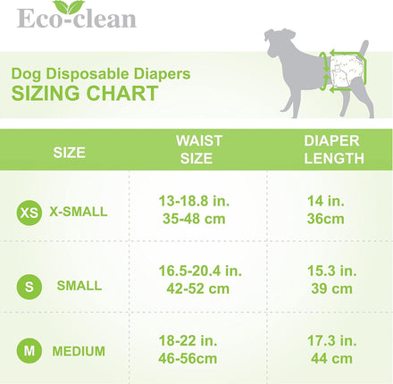 ECO-CLEAN Disposable Female Dog Diapers are designed for little puppy training or dogs with incontinence, excitable urination or marking issue. The unique material tape will keep the diapers in the right place no matter how naughty your puppy is, which can save your furniture or floor away from unwanted accidents.