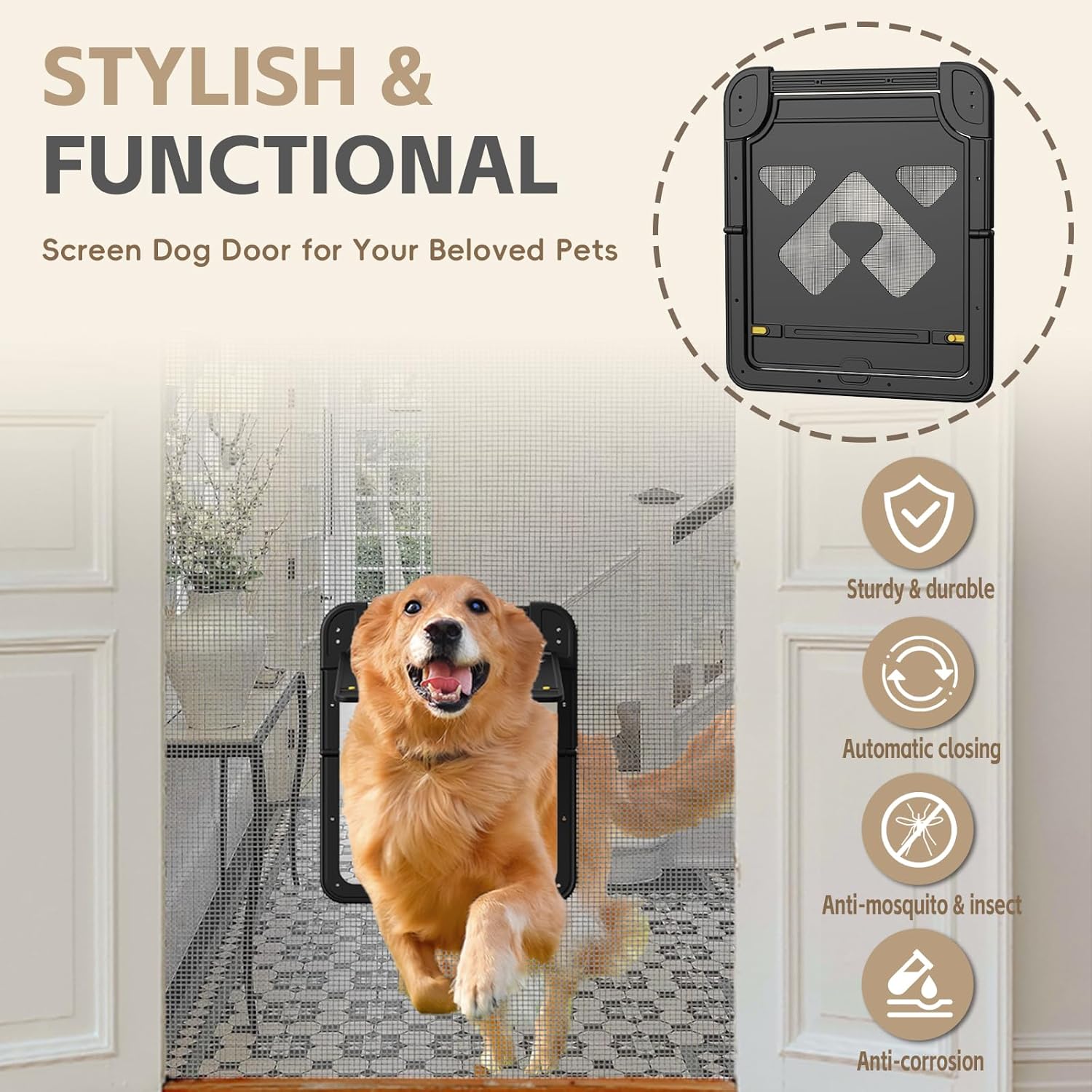 - Sturdy Construction & Anti-Scratch: Manufactured with high-quality ABS plastic, this screen door with dog door ensures durability. The screen mesh is strong enough to prevent scratches or damage from your dog.