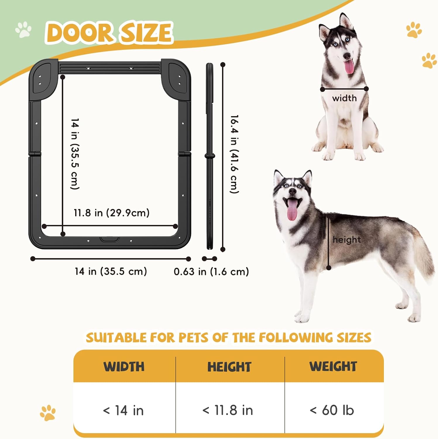 - Pet Freedom & Convenience: Ideal for busy pet parents, our dog door for screen door offers a practical solution to allow your furry friend to come and go as they please without needing to open the door every time.Inner flap: 14×11.8 inches; outer frame: 16.4×14 inches. Suitable for pets up to 60 pounds.