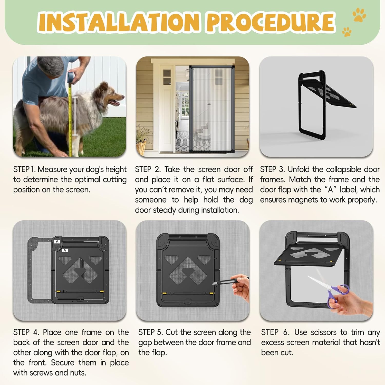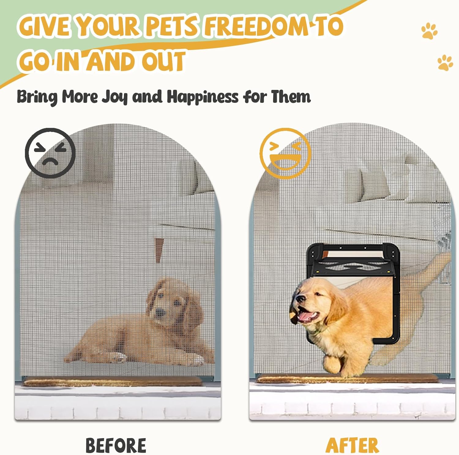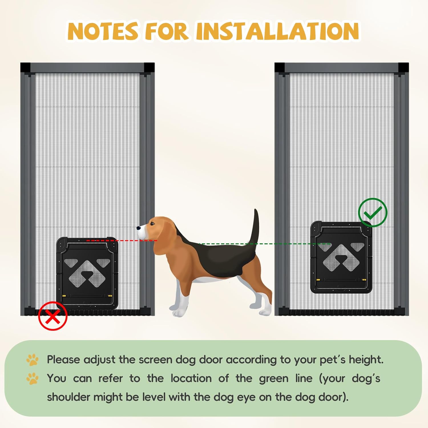 - Sturdy Construction & Anti-Scratch: Crafted from high-quality plastic and mesh, our screen dog door is built to endure daily wear and outdoor elements, ensuring long-lasting performance and durability through all seasons without warping or losing shape.