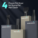 - [4 Nozzles & Flexible Spring Hose] This dog blow dryer comes with various nozzles to accommodate different pet grooming needs. The hose (80-250cm/32-98in) is thickened and designed to withstand high temperatures, while remaining flexible and preventing any snags when drying your dog, even if they tend to wiggle during grooming.
