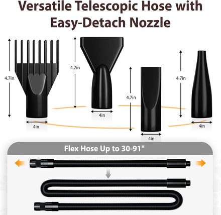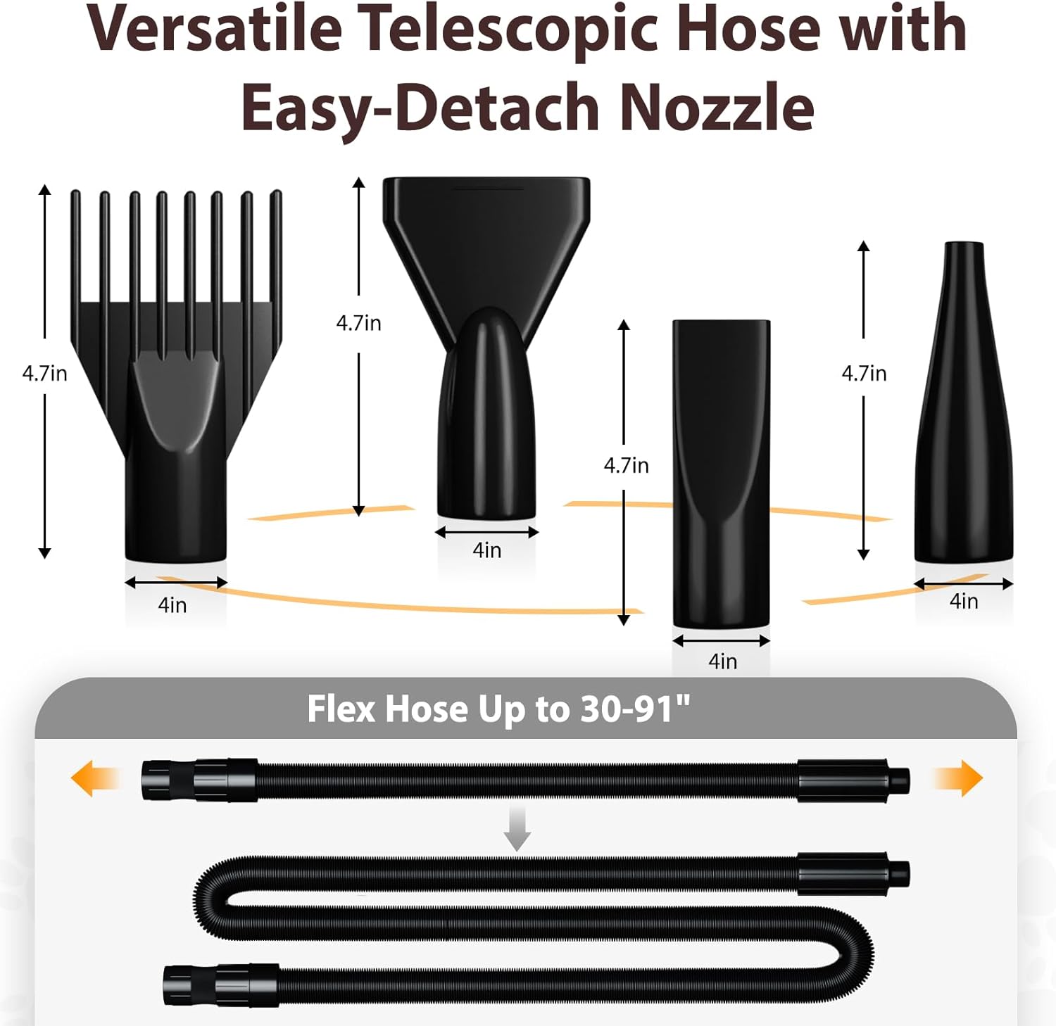 - Perfect accessories and appearance: We are equipped with four nozzles in different shapes to meet all drying requirements. Ergonomic handle, easy to use. Small size, convenient for transportation and storage.At the same time, we also provide a pet bathing brush to make it convenient for you to bathe your honey pet