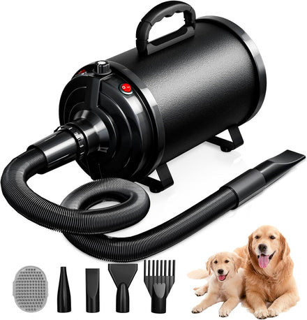 - 3800w stable output power: Dog hair dryer is equipped with an upgraded 3800w/5.2PS motor. It can continuously deliver strong performance. You can use the button to set the wind speed, and the speed range is 15-75m/s