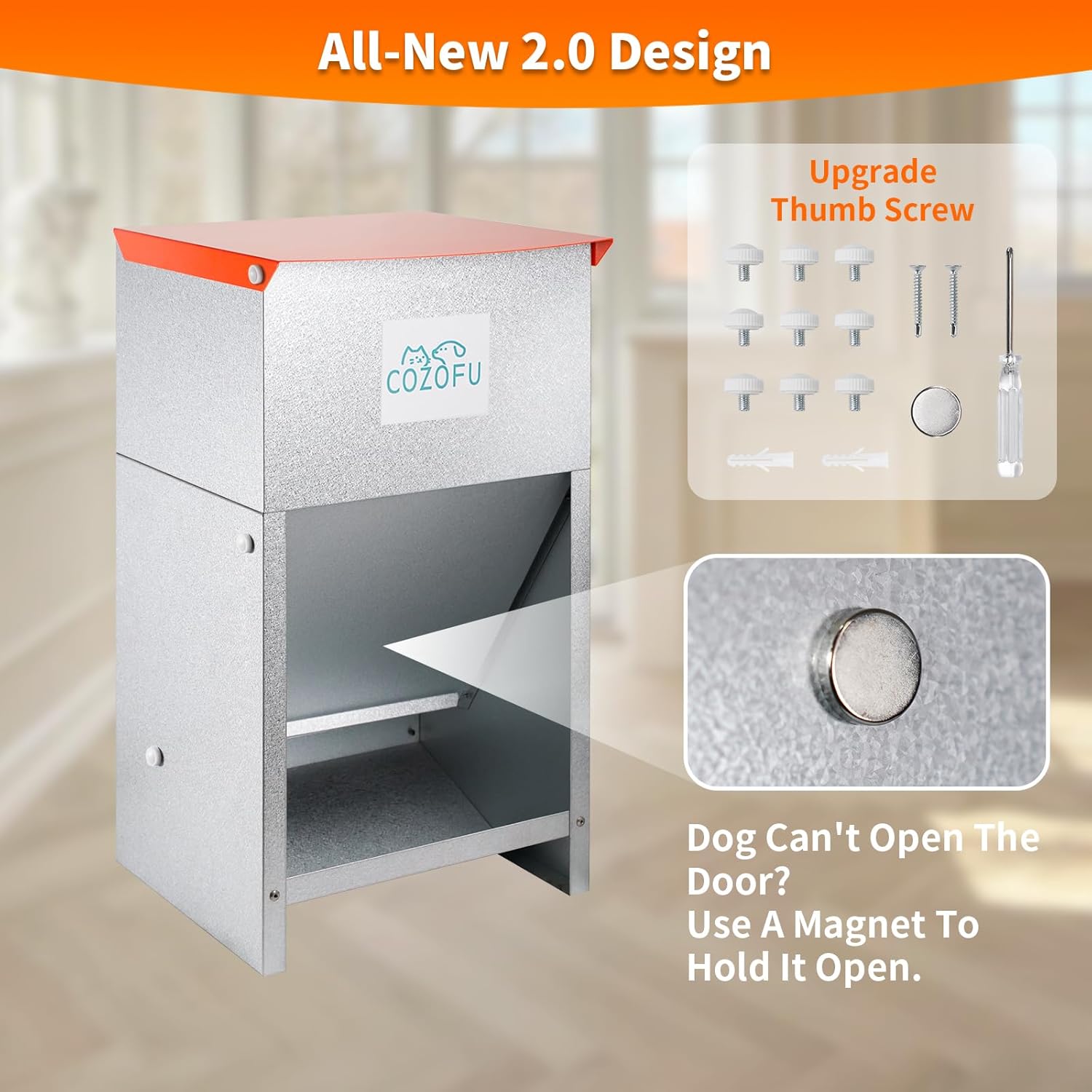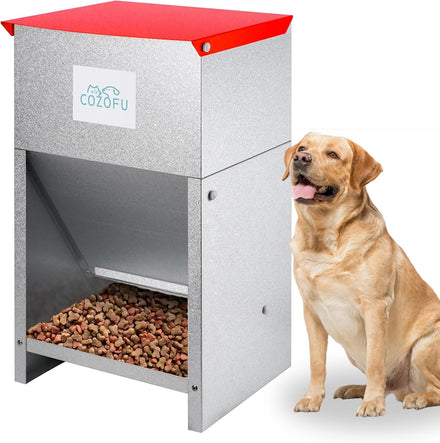- WEATHER-RESISTANT DESIGN FOR DOGS: Crafted from heavy-duty, rust-resistant G90 galvanized steel, our automatic gravity dog food dispensers are perfect for indoor or outdoor use. For outdoor placement, we recommend positioning it under a large overhang, on a covered deck, porch, or carport to keep it safe from the elements