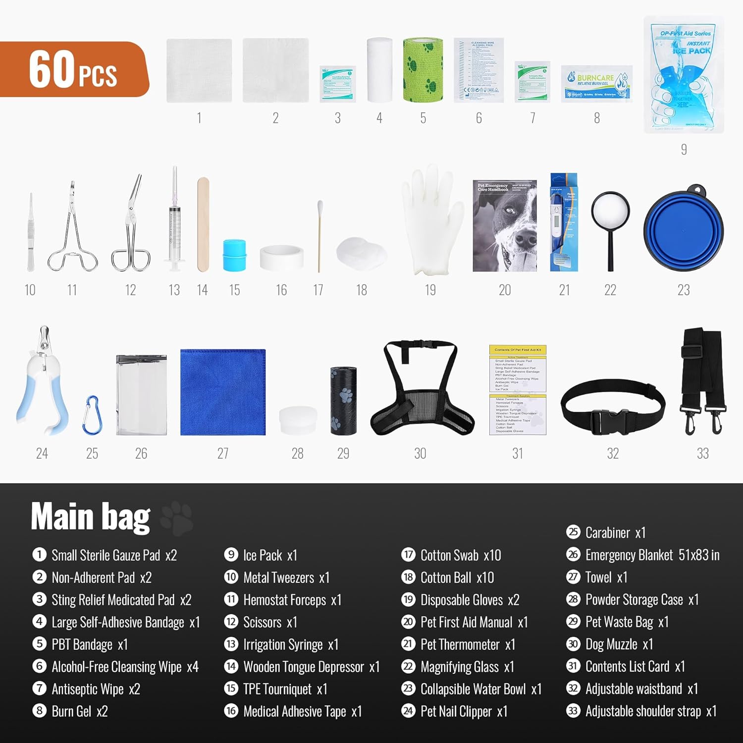 - 💪 Lightweight & Durable: Our pet emergency kit is built to withstand tough outdoor activities, yet lightweight and compact for easy portability during travel or outdoor excursions.