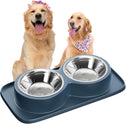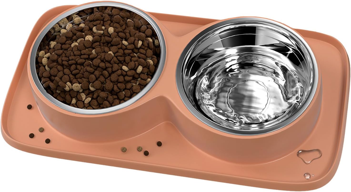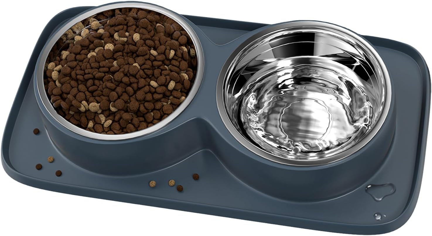 - 👍✔️【Spill-Proof and Mess-Free】 Our dual dog bowl set comes with an expansive feeding mat that effectively contains spills and messes. The raised edges around the mat ensure that no food or water escapes onto the floor, keeping your home clean and suitable for even the messiest of eaters.