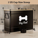 - METAL SCOOP INCLUDED - This dog food holder comes with a 1 US cup size metal scoop that can be conveniently hung by its hooked handle. The large container opening makes it easy to access and scoop your pet's food.