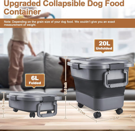 - Upgraded Collapsible Dog Food Storage: This Upgraded Cat Food Container is with large handle. It’s easy to move around or you can hang it up to save space. The pet food container is perfect to storage dog, cat, birds food and human dry food of rice, flour and beans