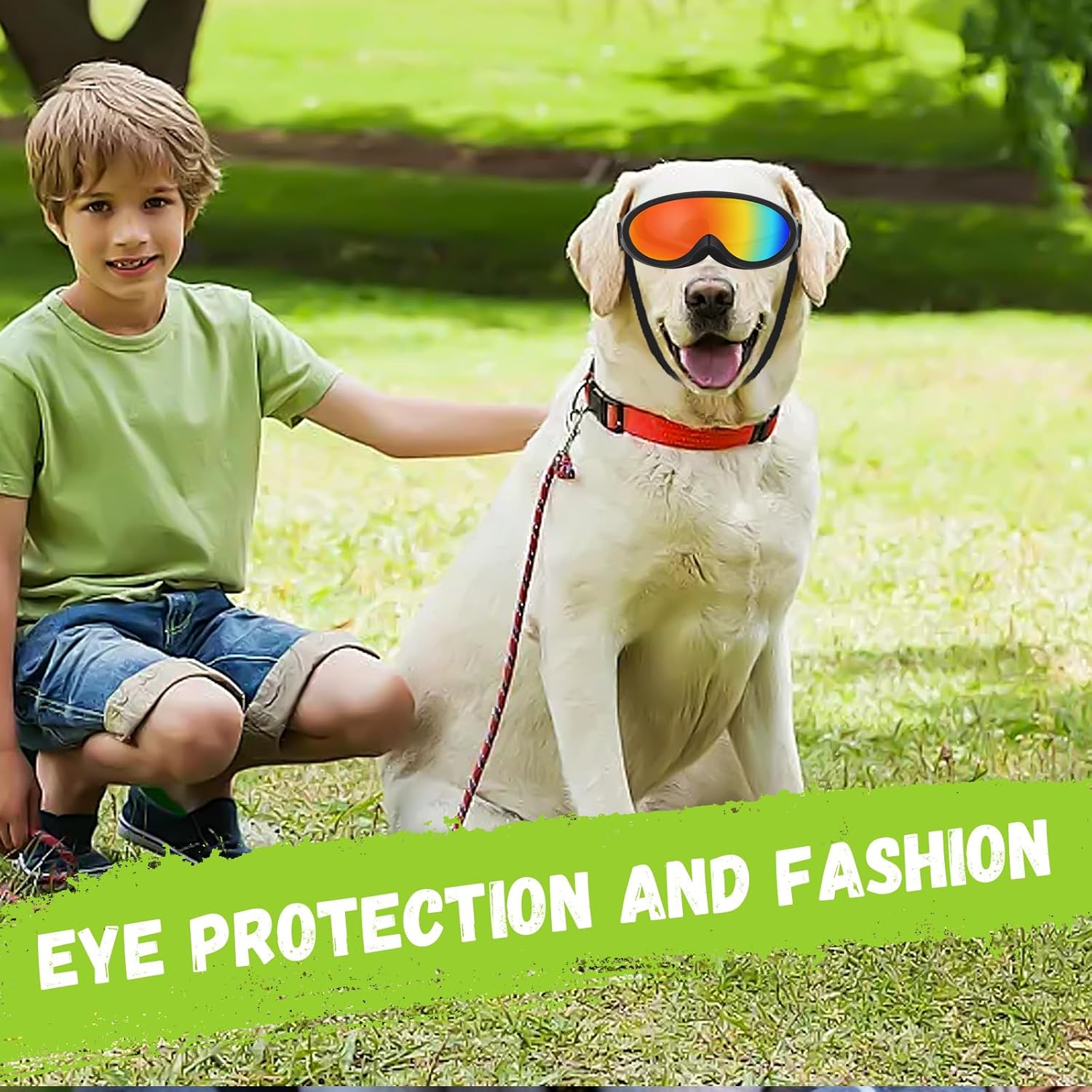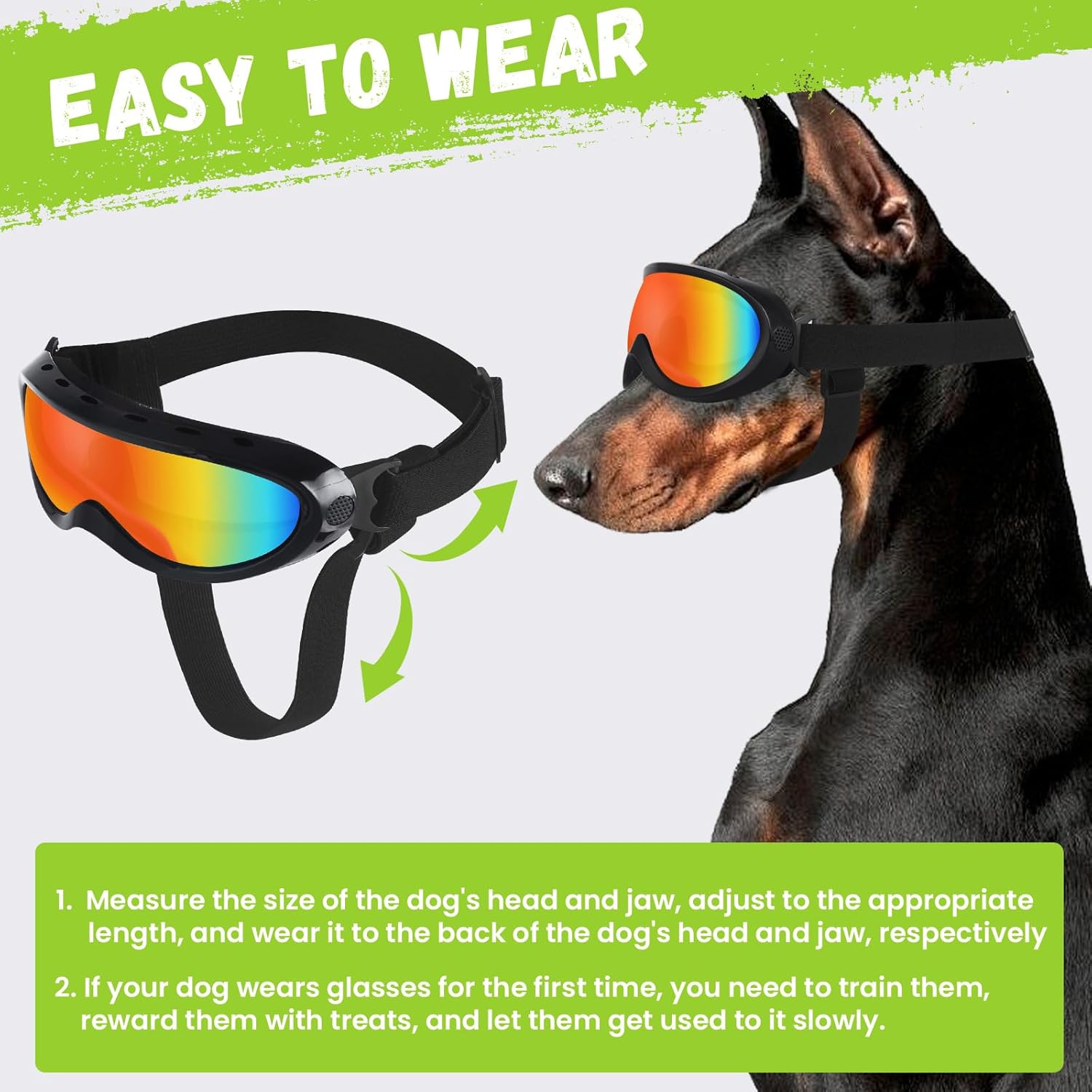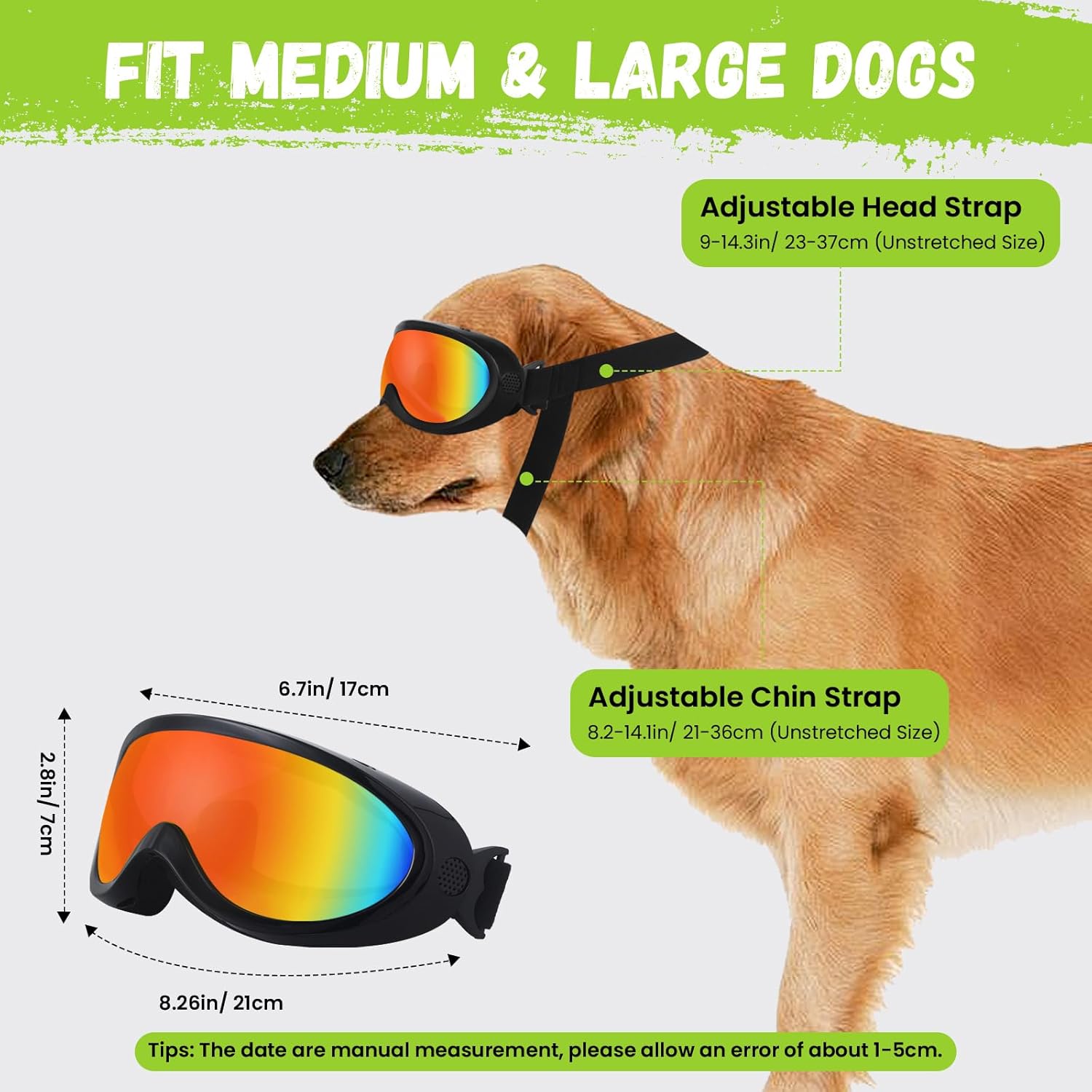 - 【Suitable For】: Our large dog sunglasses with adjustable head circumference: 20-32cm, adjustable chin circumference: 17-24cm, weight 1.27 oz, no tension measurement, enough adjustability. Suitable for Yorkshire Terrier, Dachshund, Poodle, Shih Tzu, Schnauzer, Chihuahua, Pomeranian, Maltese, Teddy, Bichon Frise, Beagle and other large dog breeds as well as puppies of medium and large breeds Canine Period (Please measure your dog's head and chin size before ordering dog goggles)
