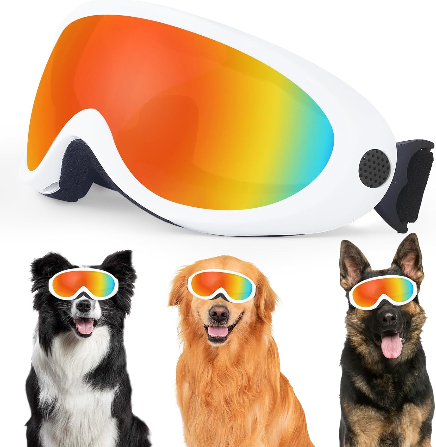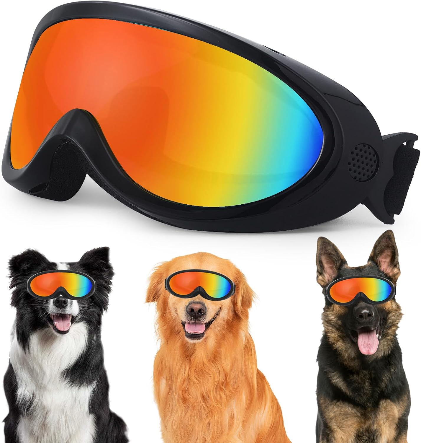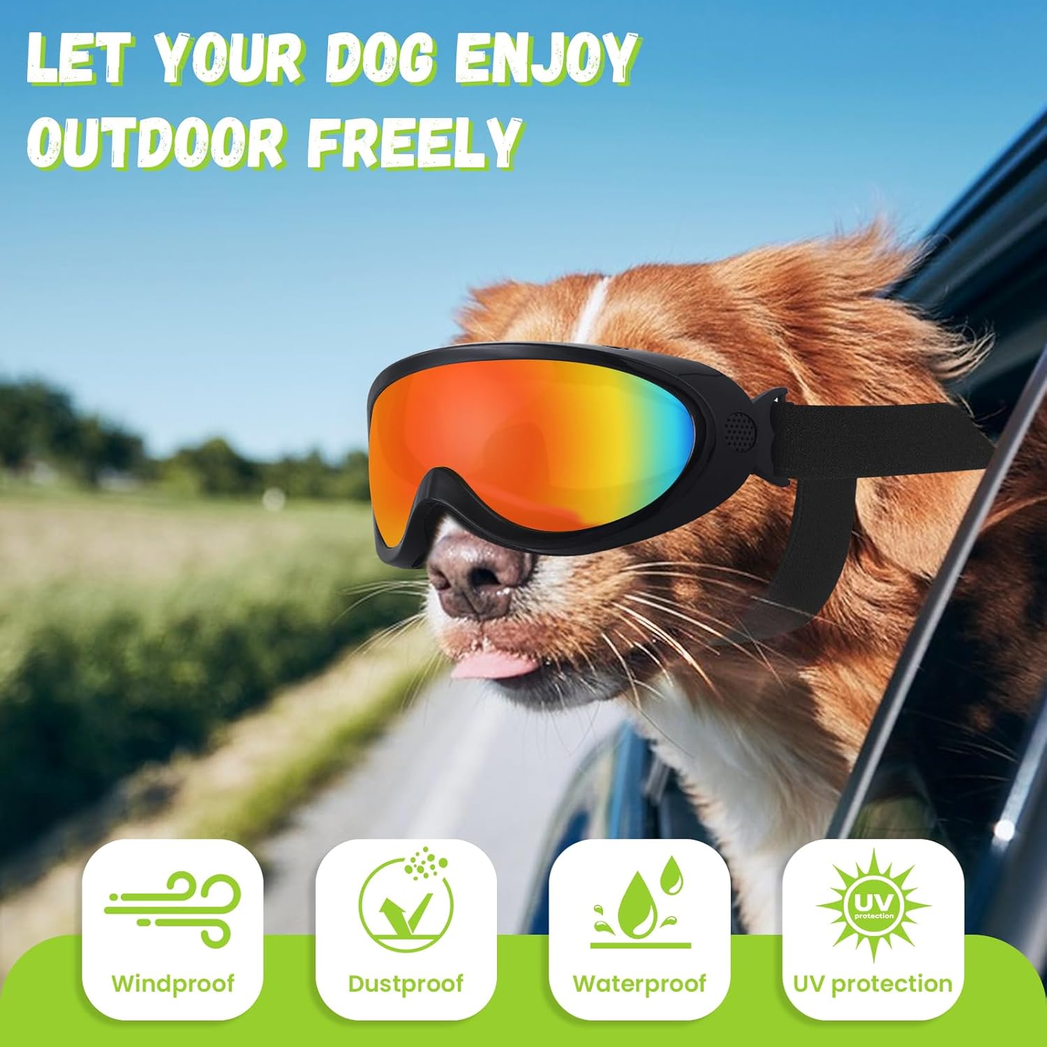 - 【Suitable For】: Our large dog sunglasses with adjustable head circumference: 20-32cm, adjustable chin circumference: 17-24cm, weight 1.27 oz, no tension measurement, enough adjustability. Suitable for Yorkshire Terrier, Dachshund, Poodle, Shih Tzu, Schnauzer, Chihuahua, Pomeranian, Maltese, Teddy, Bichon Frise, Beagle and other large dog breeds as well as puppies of medium and large breeds Canine Period (Please measure your dog's head and chin size before ordering dog goggles)
