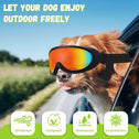 - 【Soft Foam Pad】The foam padding inside the pet sunglasses is comfortable and skin-friendly. The spacious internal structure and ventilation hole design can perfectly relieve eye fatigue and eye pressure. It can effectively prevent the water vapor generated when wearing glasses, and the dog will not feel discomfort after wearing it for a long time. Fully enclosed dog goggles will fully protect your pet's eyes from damage from UV rays, wind, dust, and sand.