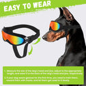 - 【Elastic Straps】: Adjustable elastic straps can adapt to different breeds of puppies and large dogs, the flexible headband and chin strap needs to be adjusted and tightened to make the dog glasses fit the face. Let you never worry about falling off easily.