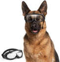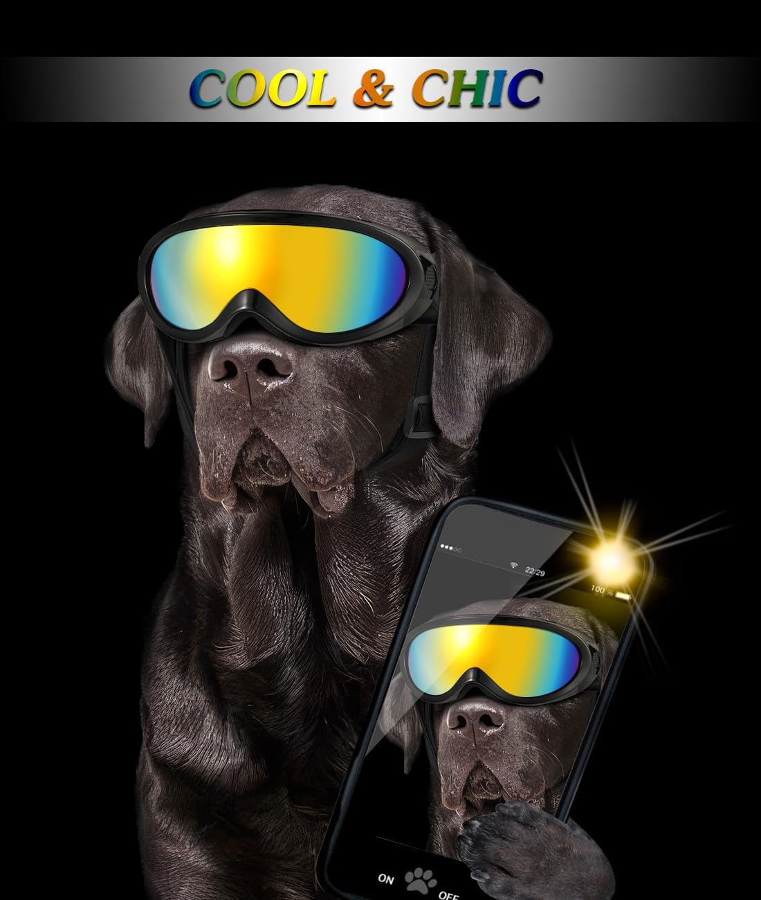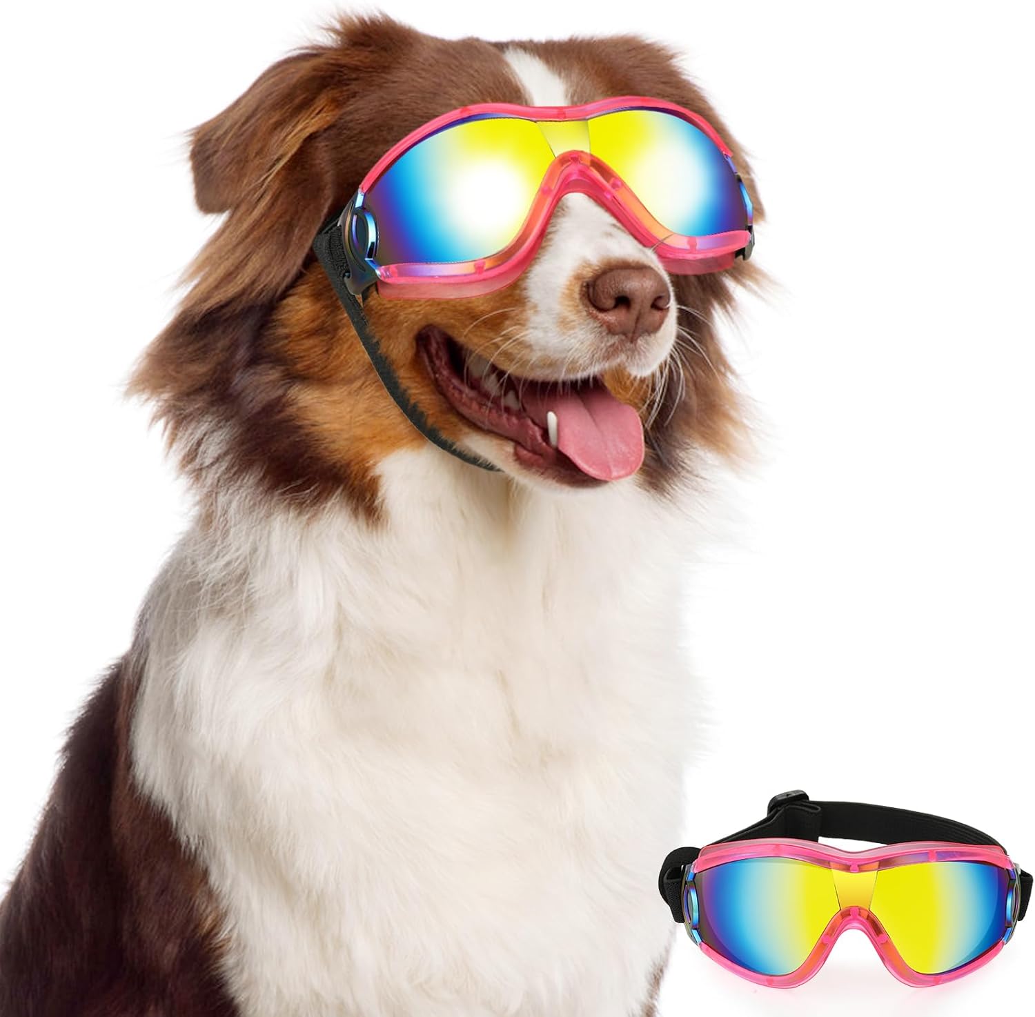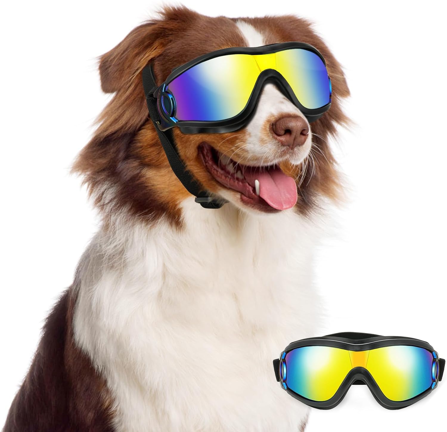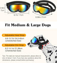 - 【Premium Material】With anti-scratch PC lenses, our sunglasses for dogs large breed feature excellent UV protection, not easy to break or damage, protecting your pet's eyes from strong sunshine/ wind/ snow/ water/ dust. With a sponge pad around the lenses, it perfectly alleviates eyestrain or the pressure from the glasses and the dog will not feel uncomfortable for long-term wear.