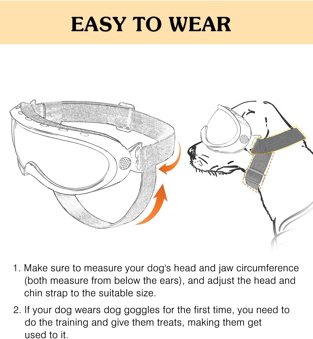 - 【Curved Design】Our large dog goggles are specially designed with a curved frame and nose pad, making them suitable for most dogs with different facial shapes. With adjustable head and chin elastic straps, it is flexible and easy to wear, fitting most medium and large dogs, comfortable to wear and not easy to fall off.