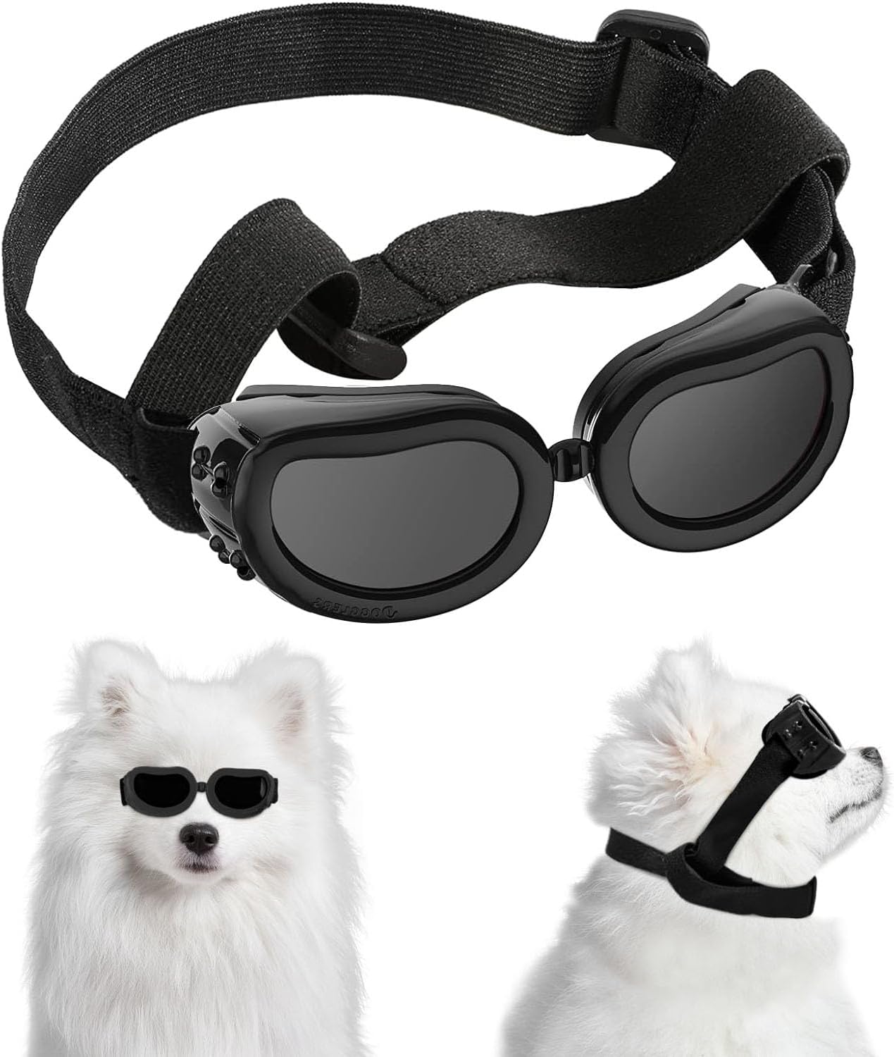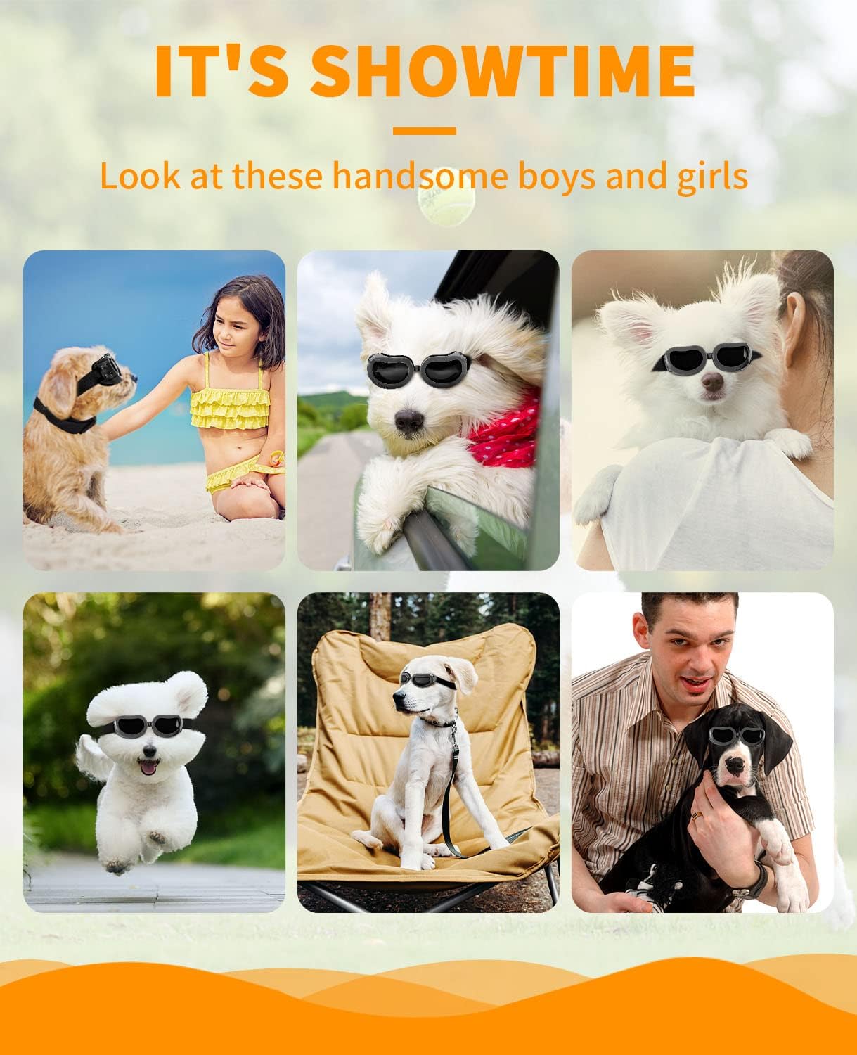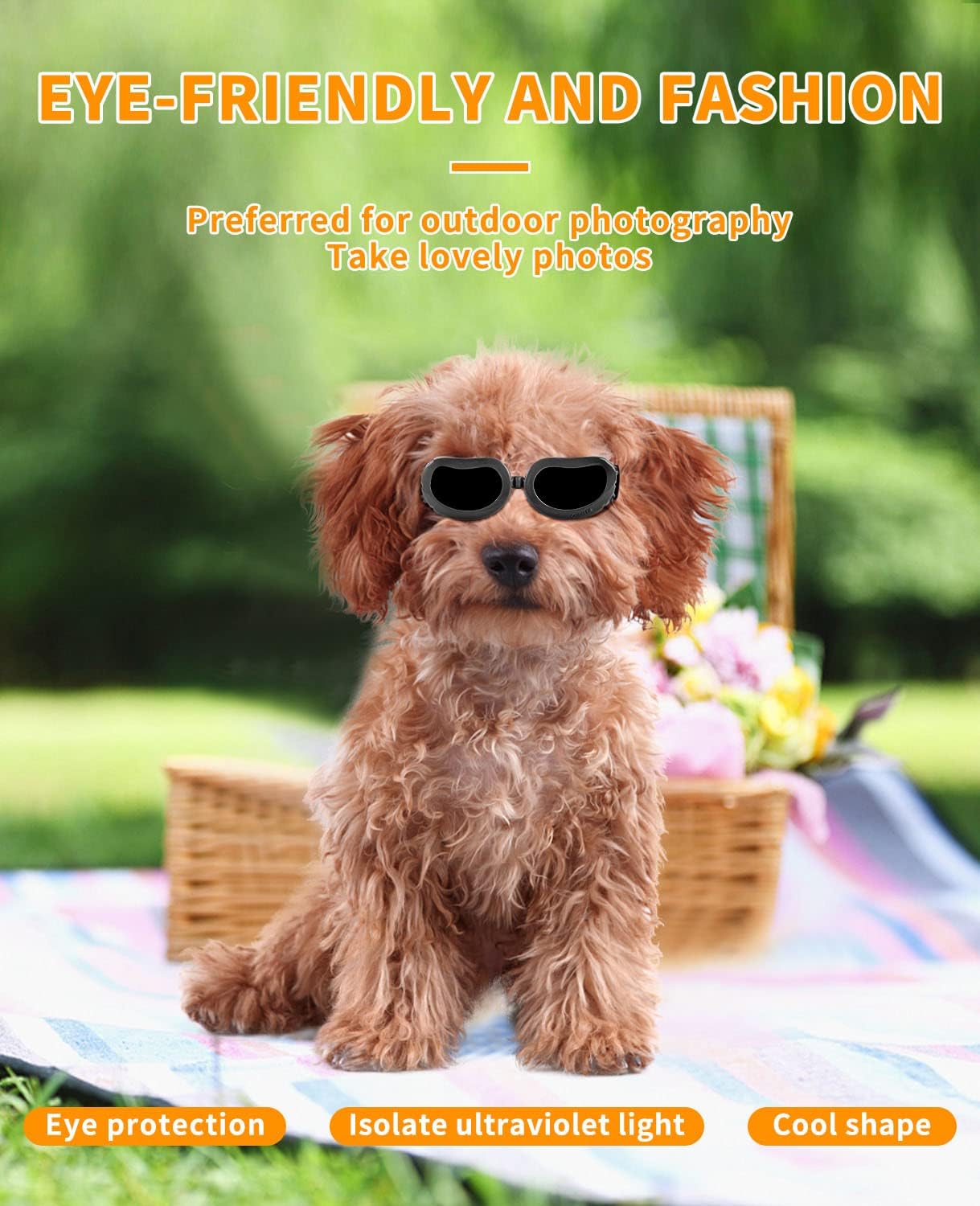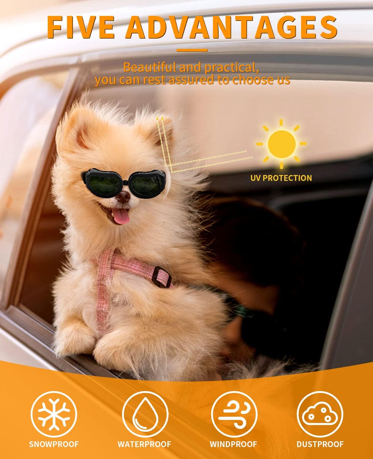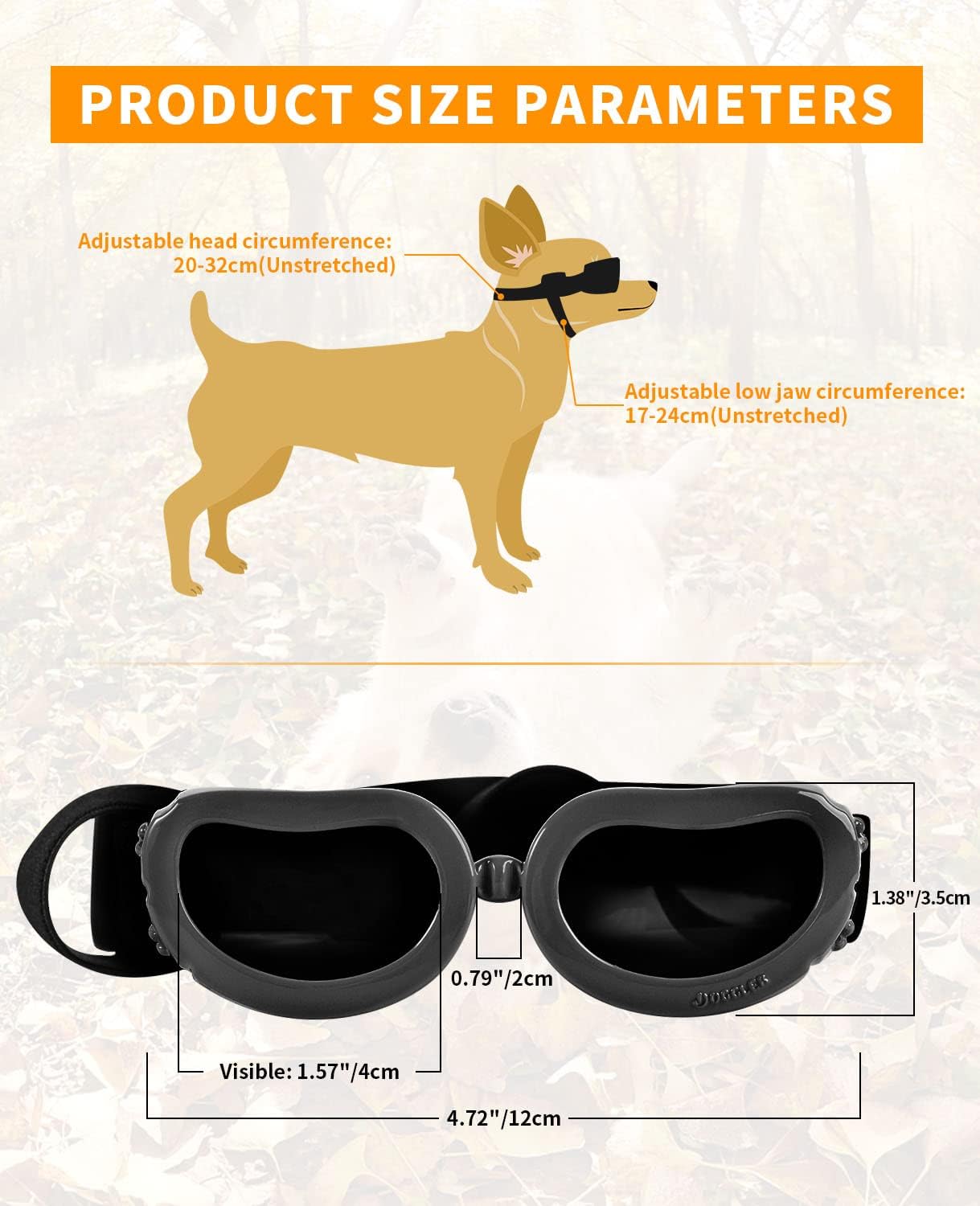 - 【Suitable For】: Our small dog sunglasses with adjustable head circumference: 20-32cm, adjustable jaw circumference: 17-24cm, weight 1.27 oz, no tension measurement, enough adjustability. Suitable for Yorkshire Terrier, Dachshund, Poodle, Shih Tzu, Schnauzer, Chihuahua, Pomeranian, Maltese, Teddy, Bichon Frise, Beagle and other small dog breeds as well as puppies of medium and large breeds Canine Period (Please measure your dog's head and jaw size before ordering dog goggles)