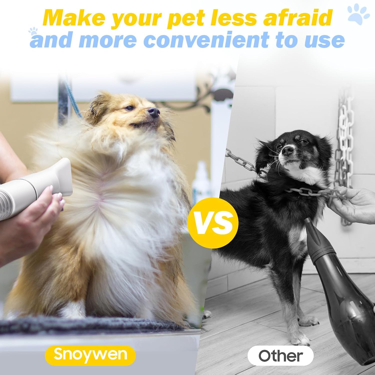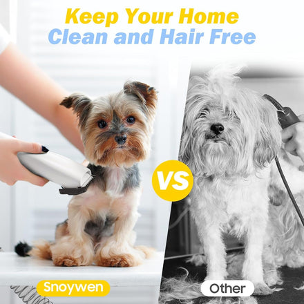 - Powerful Vacuum Suction 99% Pet Hair: The Snoywen pet grooming kit is equipped with a powerful vacuum of up to 12000pa that sucks up to 99% of pet hair and dander into the dust collection cup while grooming your pet. Pet hair will not be scattered all over the house. There is no need to clean up the work area afterwards.