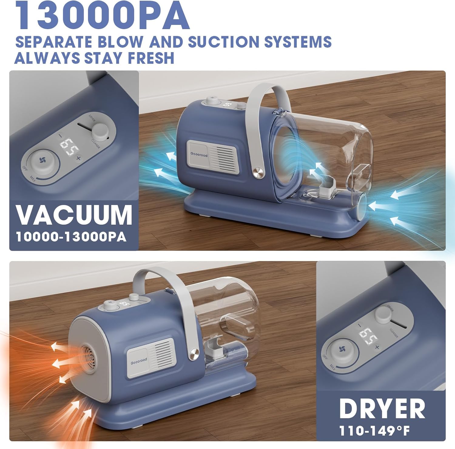 - PACKAGE INCLUDE: This 7-in-1 Dog Grooming Kit features a vacuum and dryer integrated design, including grooming tools like clippers, brushes, and a large capacity dust cup for efficient pet care at home