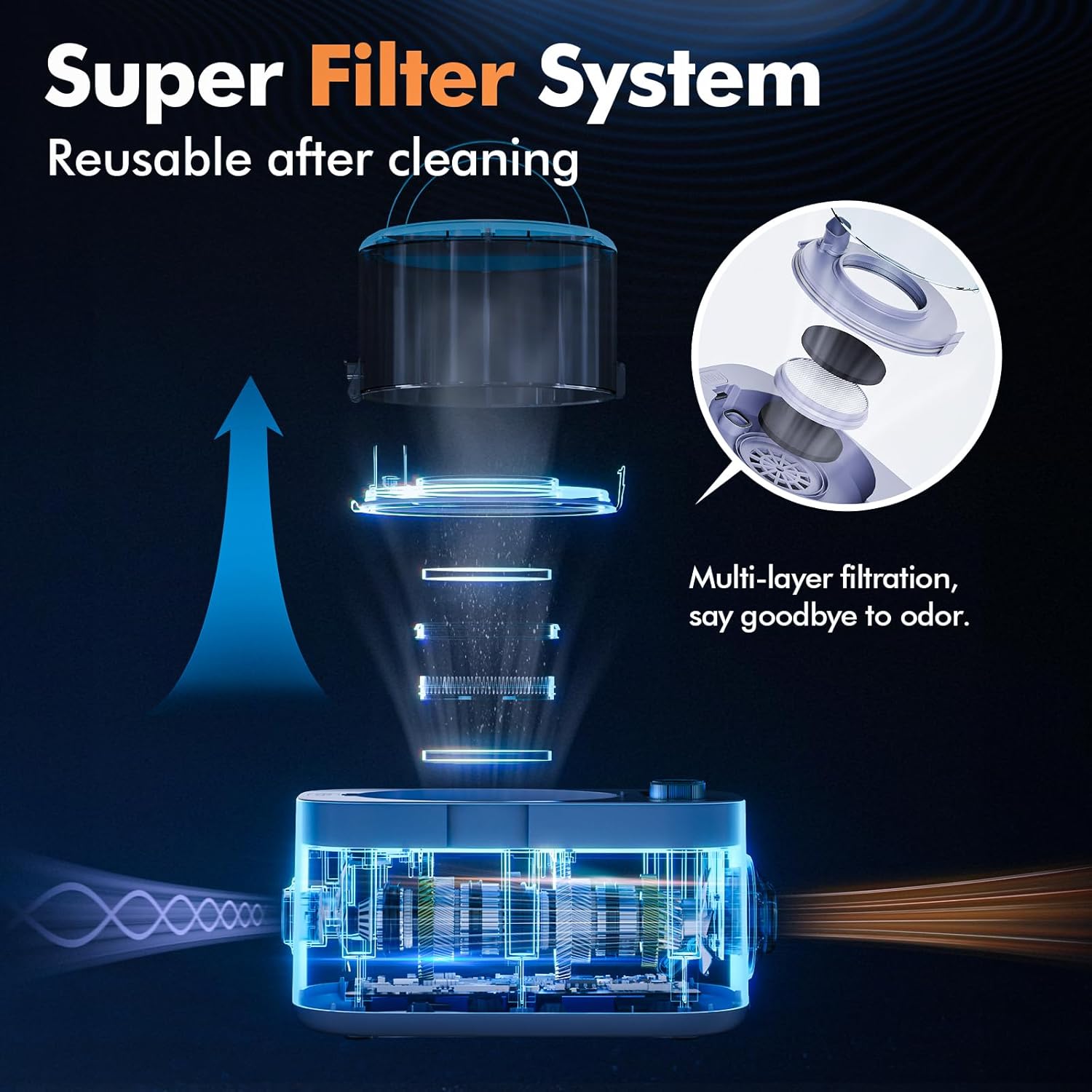 *PS: The 2 sponges and HEPA filter of the filtration system can be washed and reused.