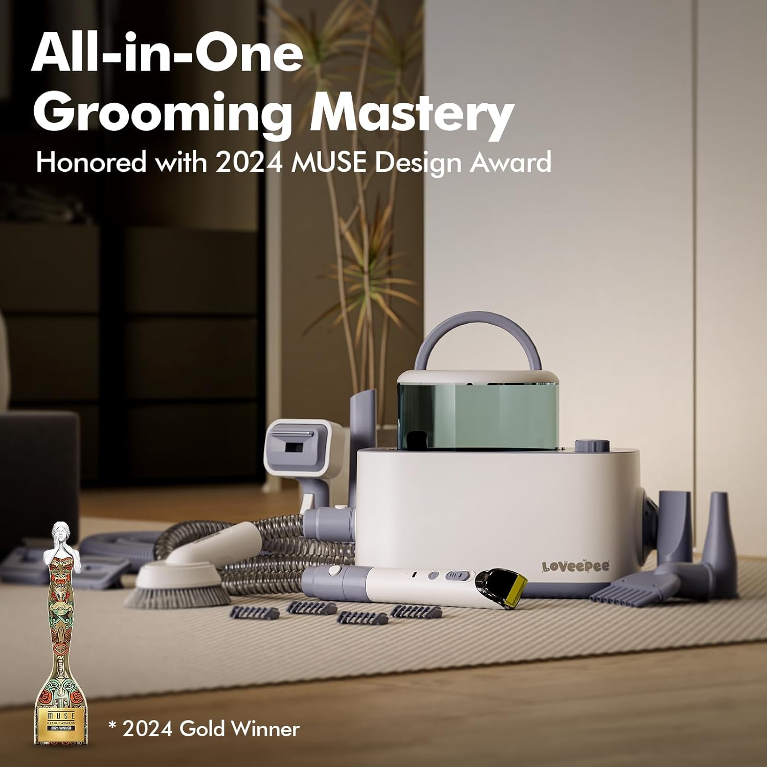 Our products combine blowing and suction with different accessories for blow drying, trimming and combing pet hair.