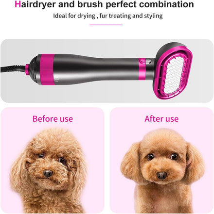 - 【Drying While Grooming 】The 2 in 1 pet grooming dryer is combine dog hair dryer with hair comb brush, it can make much easier to dry your pet after bathing, a slicker brush to remove tangles and loose fur, to keep pet's hair soft and neat. Great for dog hair brush at home, fast drying and beautiful grooming,convenient and time saving.we have rose and purple two colors for your choice.