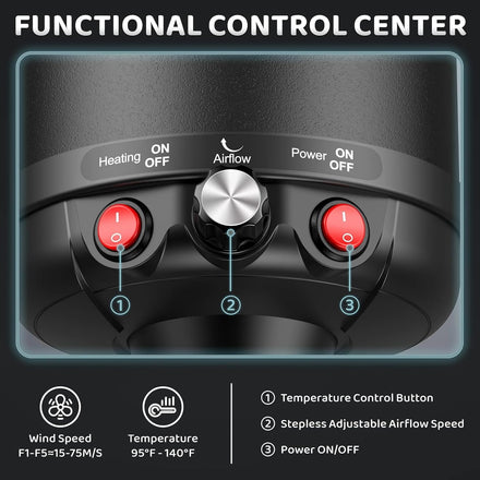 - Adjustable Speed & Temperature: Strong and stable motor equips this dog blow dryer with several speed and temperature levels. Maximum Wind Speed: 72m/s; Temperature Range: 95℉-135℉. The dryer will stop working immediately if the temperature is too high because it has a built-in temperature control protection system.