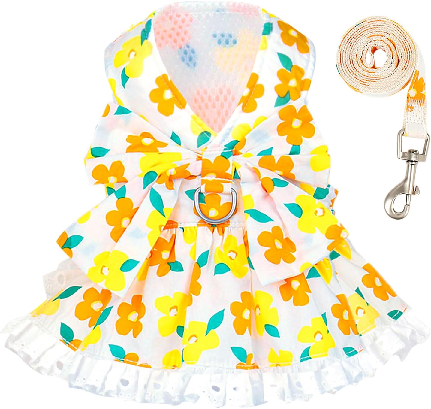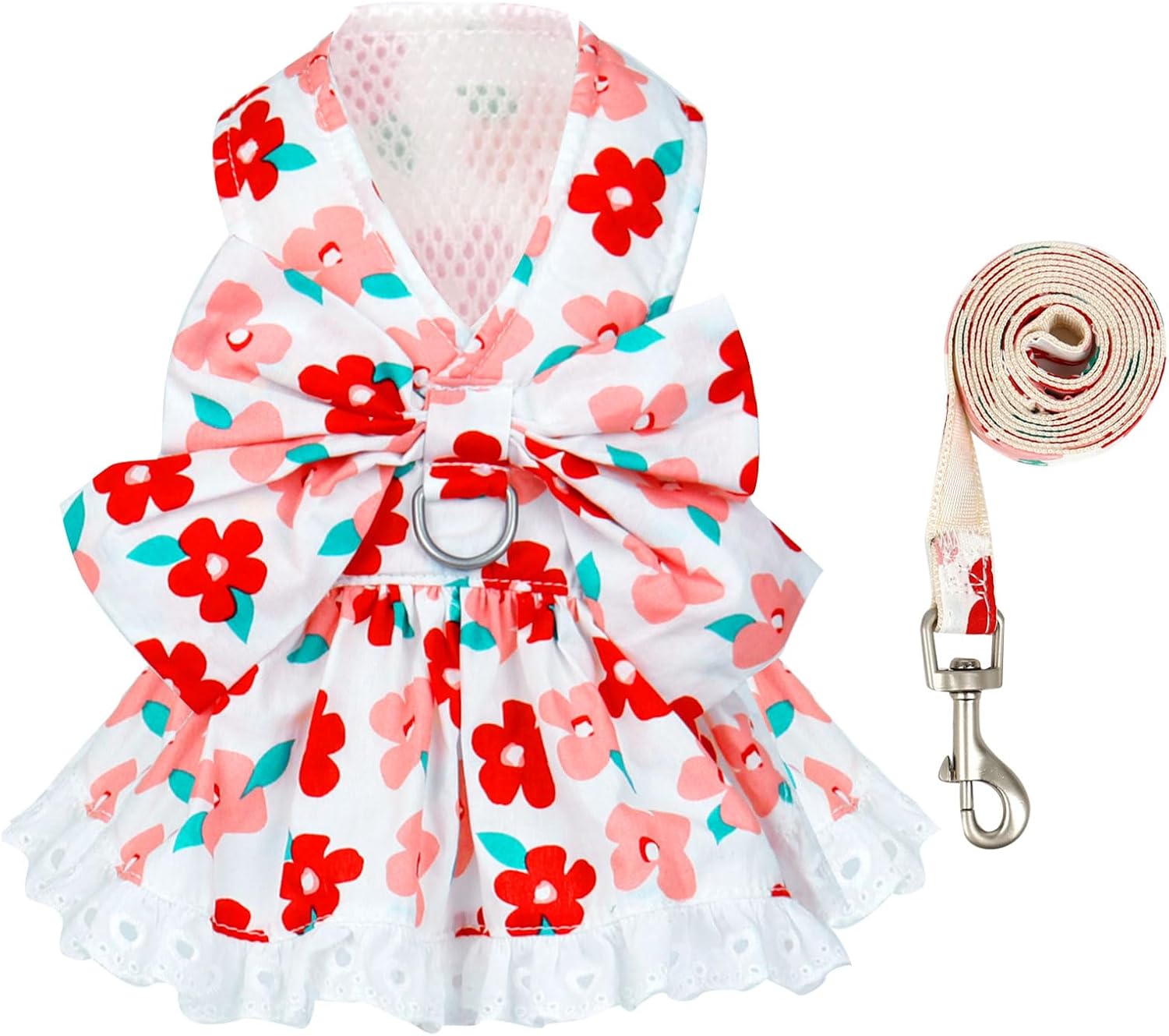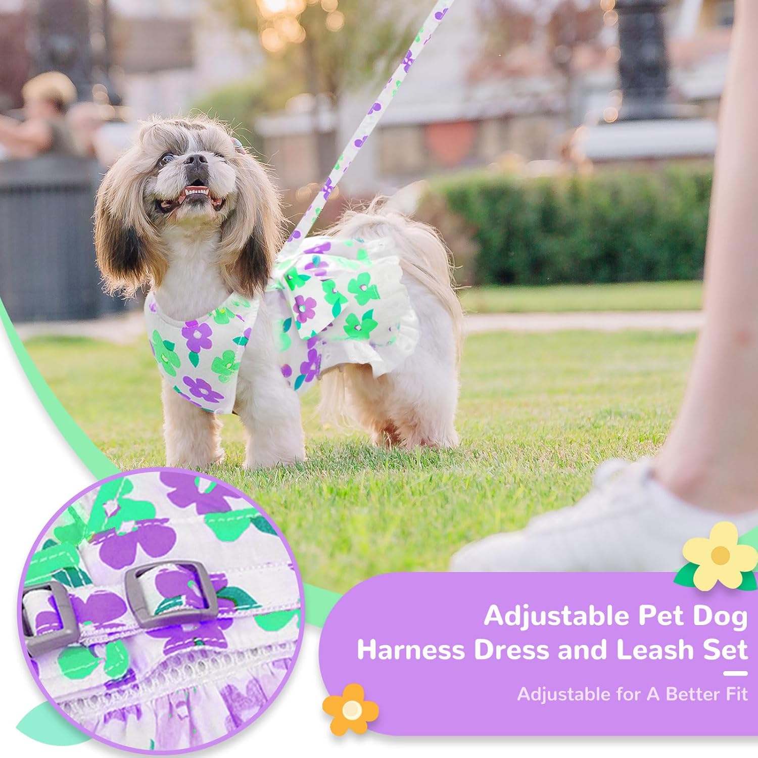 Fancy Dog Dress Harness and Leash Set:The dog harness dress comes with a matching leash,making walks a breeze while keeping your furry friend safe and secure.The cute dog harness dress also has a D-ring that allows for quick and easy leash attachment.With its easy-to-use buckle,putting on and taking off the pet harness dress