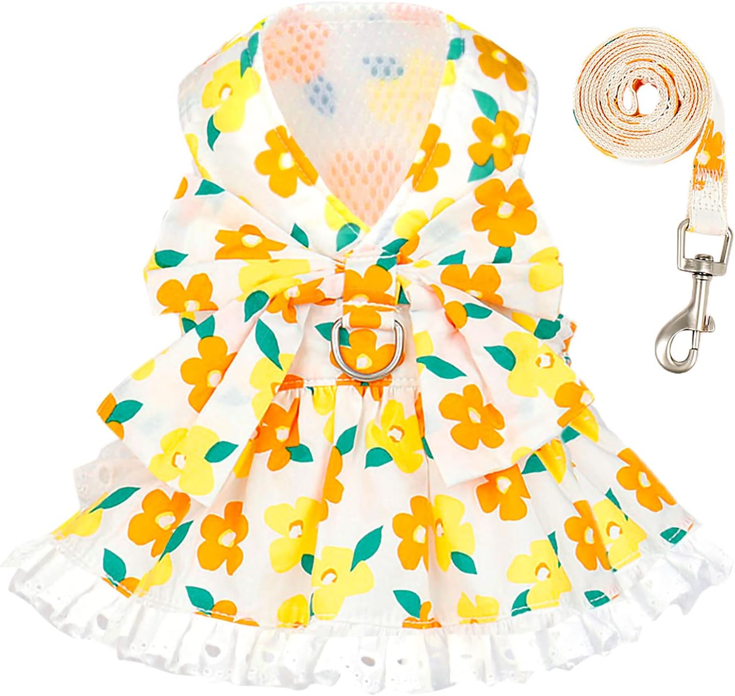 Breathable and Adjustable Puppy Dress: Made from high-quality materials,this summer dog dress features a breathable mesh lining to keep your pooch comfortable during walks and adventures.The adjustable straps and Hook and Loop fastener ensure a perfect fit every time,and the doddie dress is easy to put on,making it a hassle-free experience for both you and your furry friend
