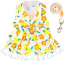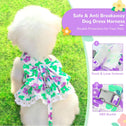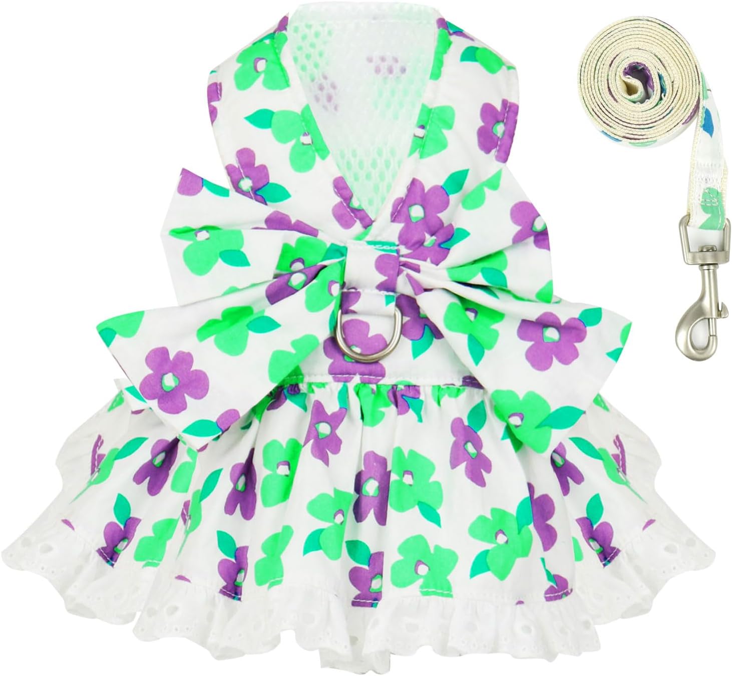 Dog Harness Dress Leash Set for Small Dog Summer Clothes Girl Female Puppy Cats Outfits Cute Floral Bowknot Princess Birthday Dress for Extra Small Pet Doggie Kitten Outfits Apparel(Green,XS)