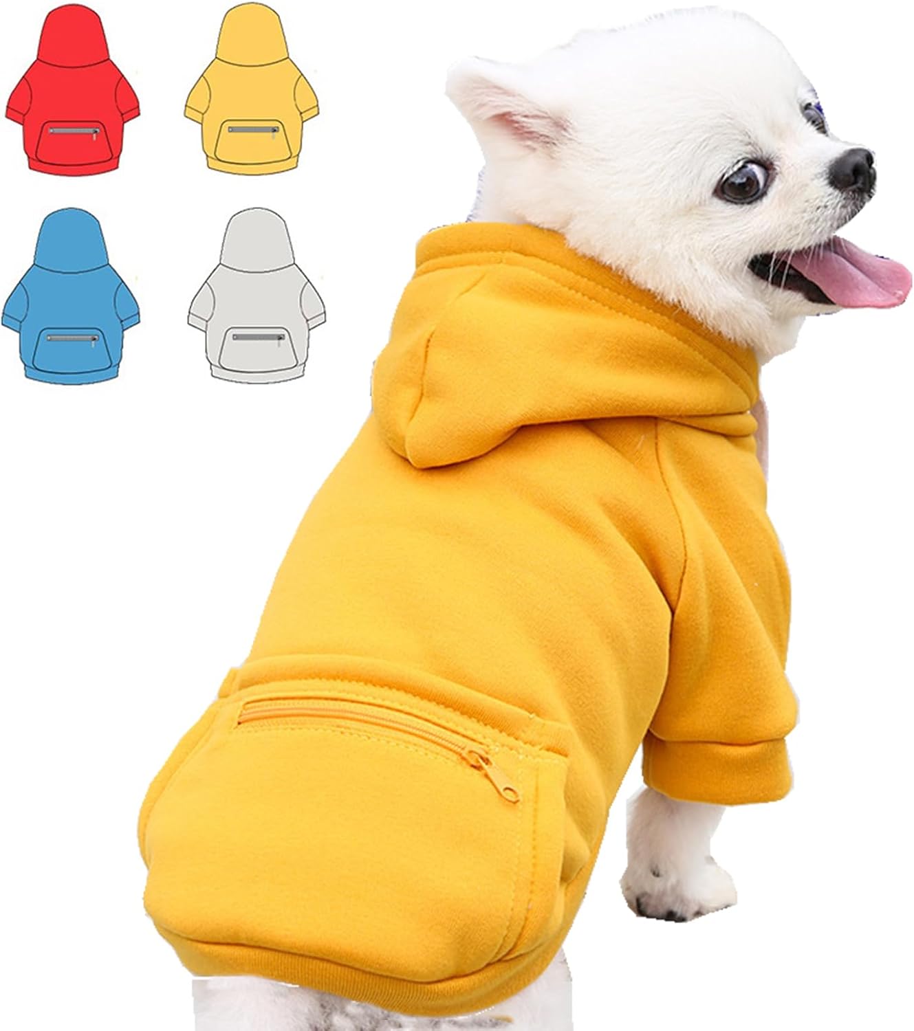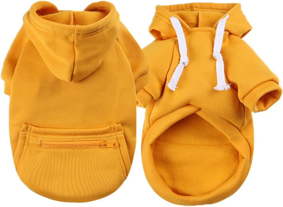 Dog Hoodie for Small Medium Large Dogs,Fleece Hoodie for Dogs with Zipper Pocket,Fall Winter Warm Cat Puppy Sweatshirts(Yellow,S)