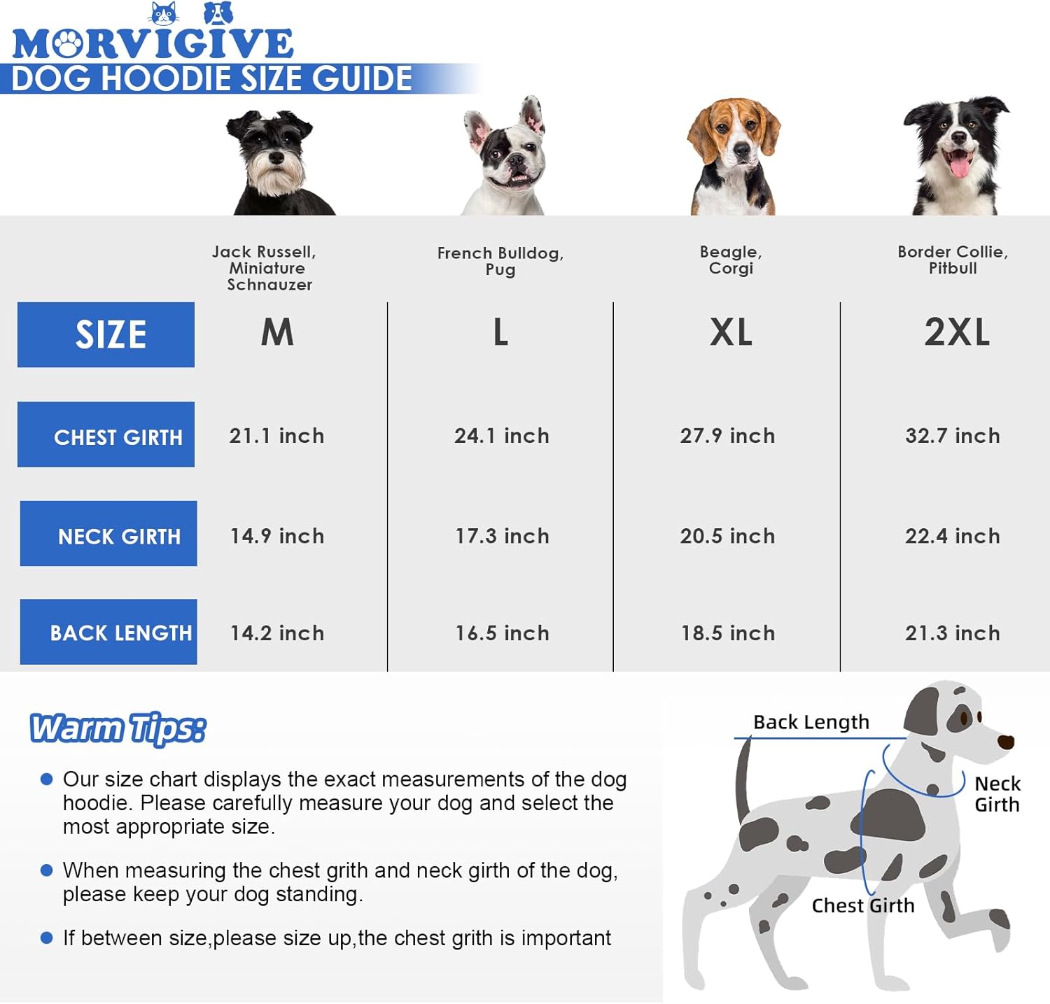 Dog Hoodie: Chest Girth 24.1", Neck Girth 17.3", Back Length 16.5". Ideal for Medium Breeds like French Bulldog,Pug, etc. Measure Dog Carefully Before Purchase. Chest Size Priority