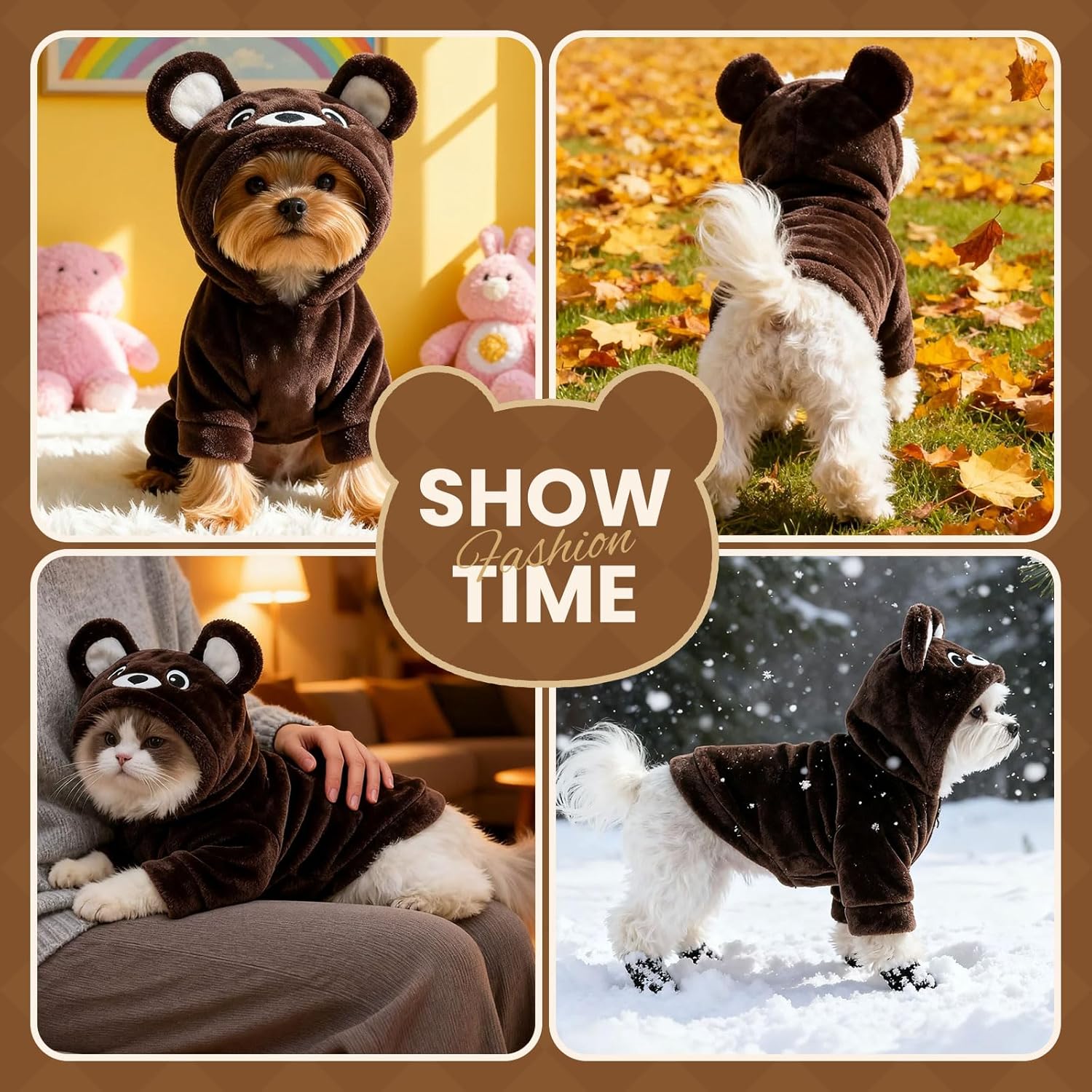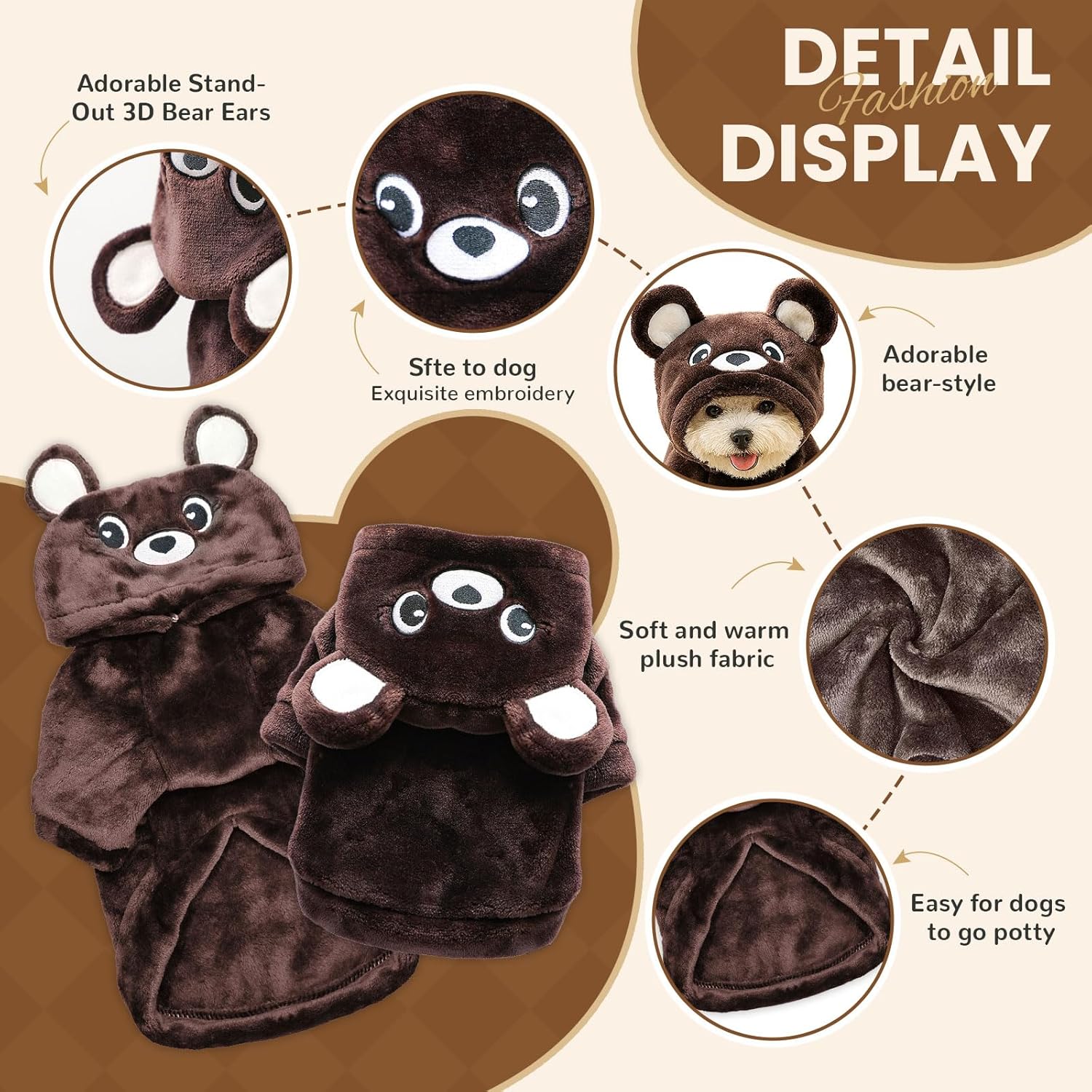 - Adorable Bear Hoodie Costume & Cozy Sweater : Transform your pup into the cutest little bear! This charming hoodie features a 3D bear ear hood and embroidered eyes & mouth, creating an irresistibly cute costume for parties and photos. It's not just a costume. it's a warm fleece dog sweater perfect for everyday dog winter clothes