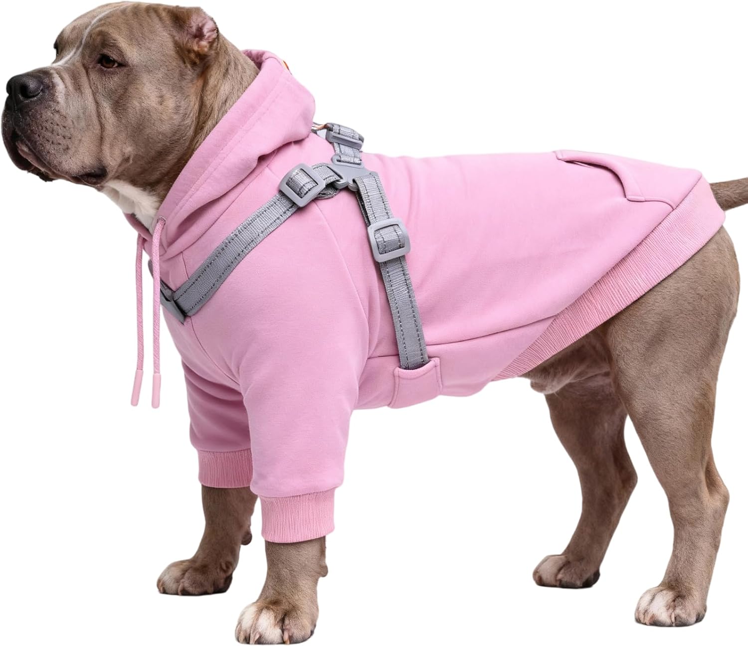 Crafted from premium butter-stretch fabric, this dog hoodie offers exceptional softness, durability, and four-way stretch for maximum comfort and mobility. Designed to fit all breeds—from small to large—the Furmate dog hoodie features a calming plush fleece interior that provides lightweight warmth without bulk. specially tailored for broad-chested dogs like French Bulldogs and Labradors, this dog hoodie ensures a comfortable and unrestricted fit. It also includes a built-in adjustable harness with a secure buckle lock, seamlessly integrated around the dog hoodie to evenly distribute pressure across the chest and waist—making it stronger and safer than traditional sewn-on attachments.