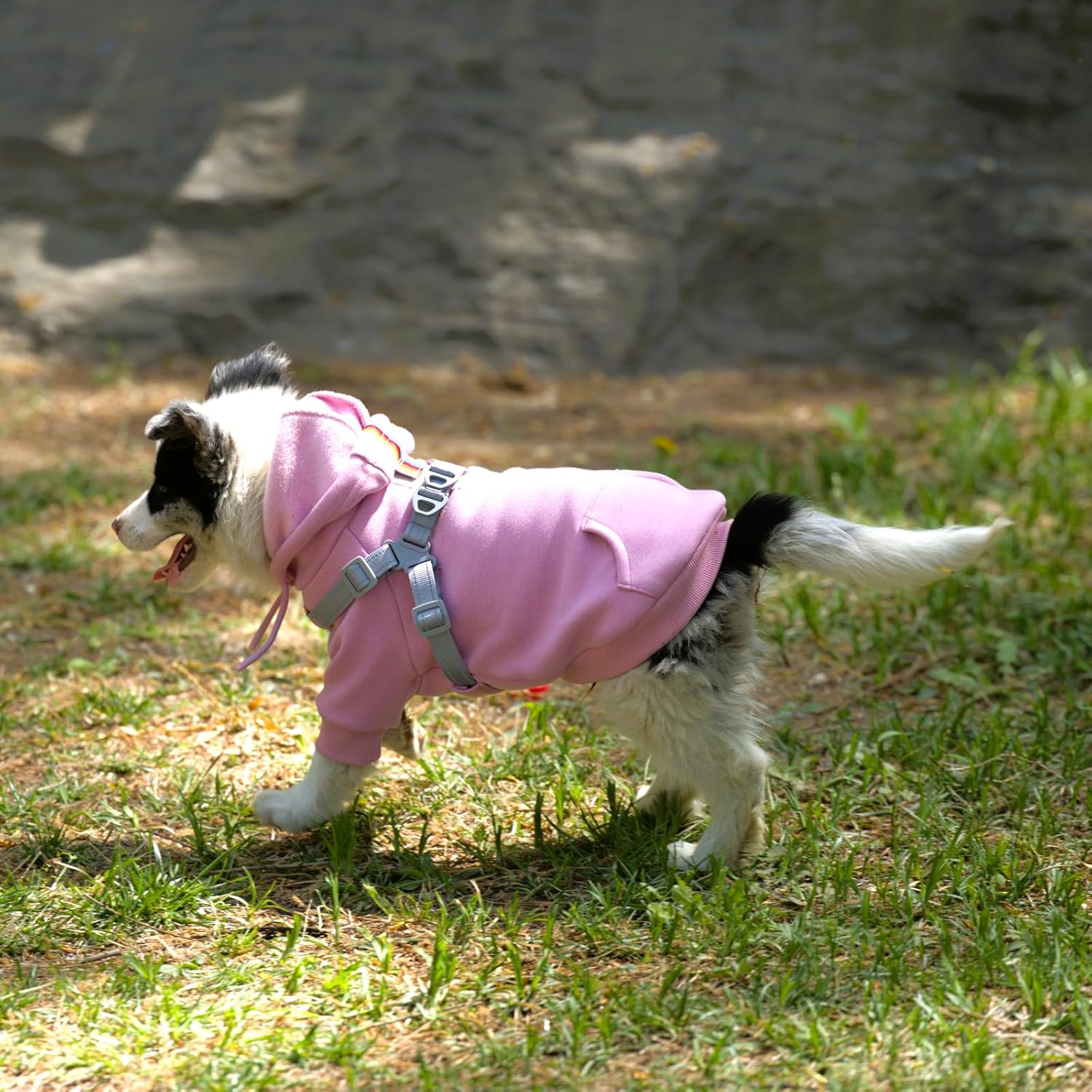 - 【Adjustable & Lockable Harness】A built-in harness that can be easily adjusted via straps with a secure buckle lock system. The harness is seamlessly integrated around the dog hoodie, distributing force evenly across the dog’s chest and waist—making it stronger and more secure than designs sewn only onto a small section of fabric