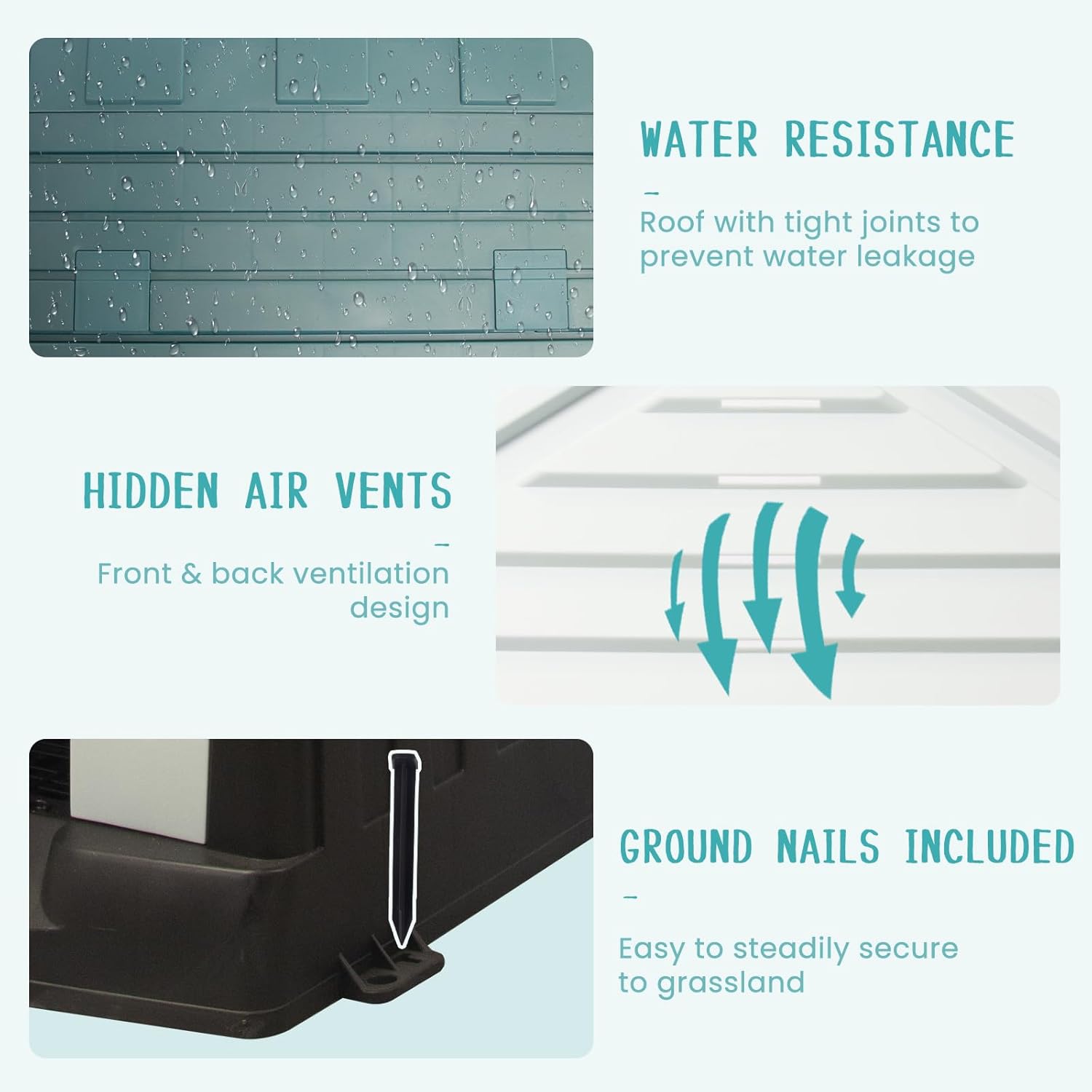 - 【Durable & Sturdy】- Constructed from high quality PP material, the outdoor dog shelter is strong & sturdy for long-lasting protection. With a stable base, the pet house is not easy to turnover. The pet house is perfect for your backyard, patio and deck