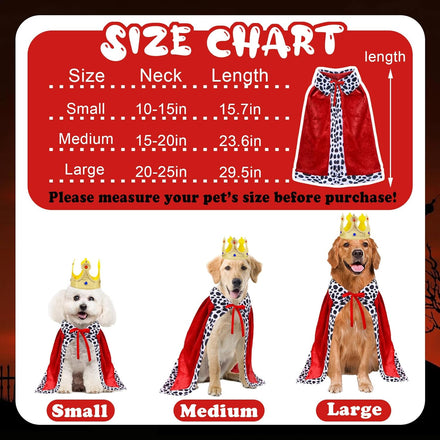 - Dog King Costume: You will received 1 red dog king cloak and 1 gold dog king crown. With these dog Halloween costumes, your dog will look like a cute king or prince on Halloween party and make some laugh. Your dog would not miss the special Halloween.
