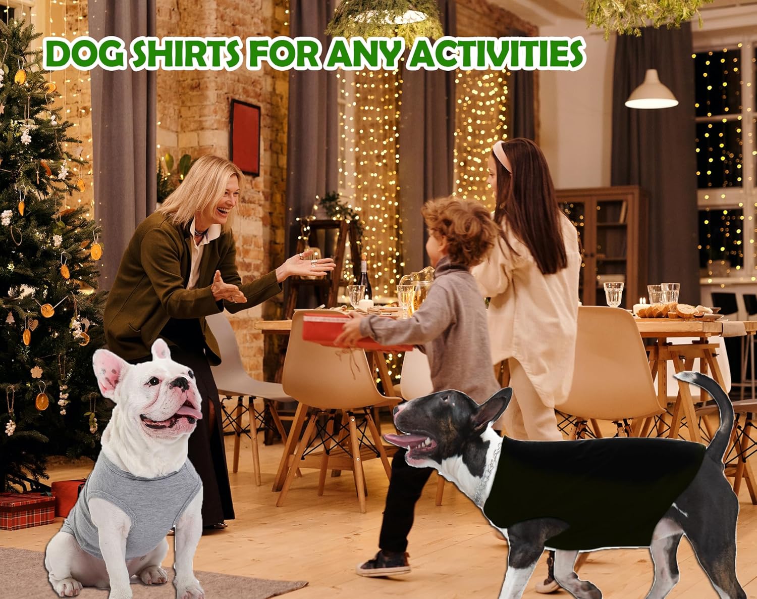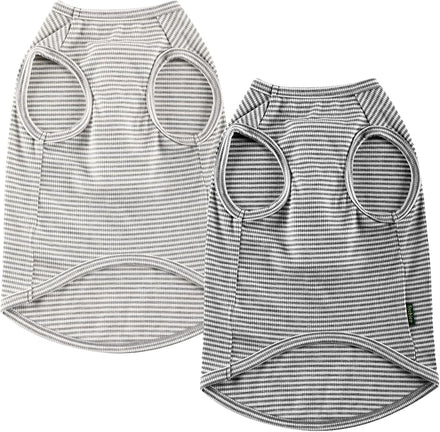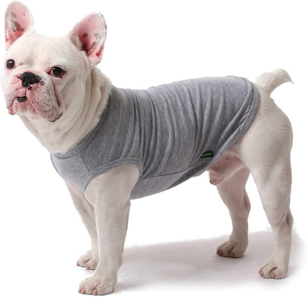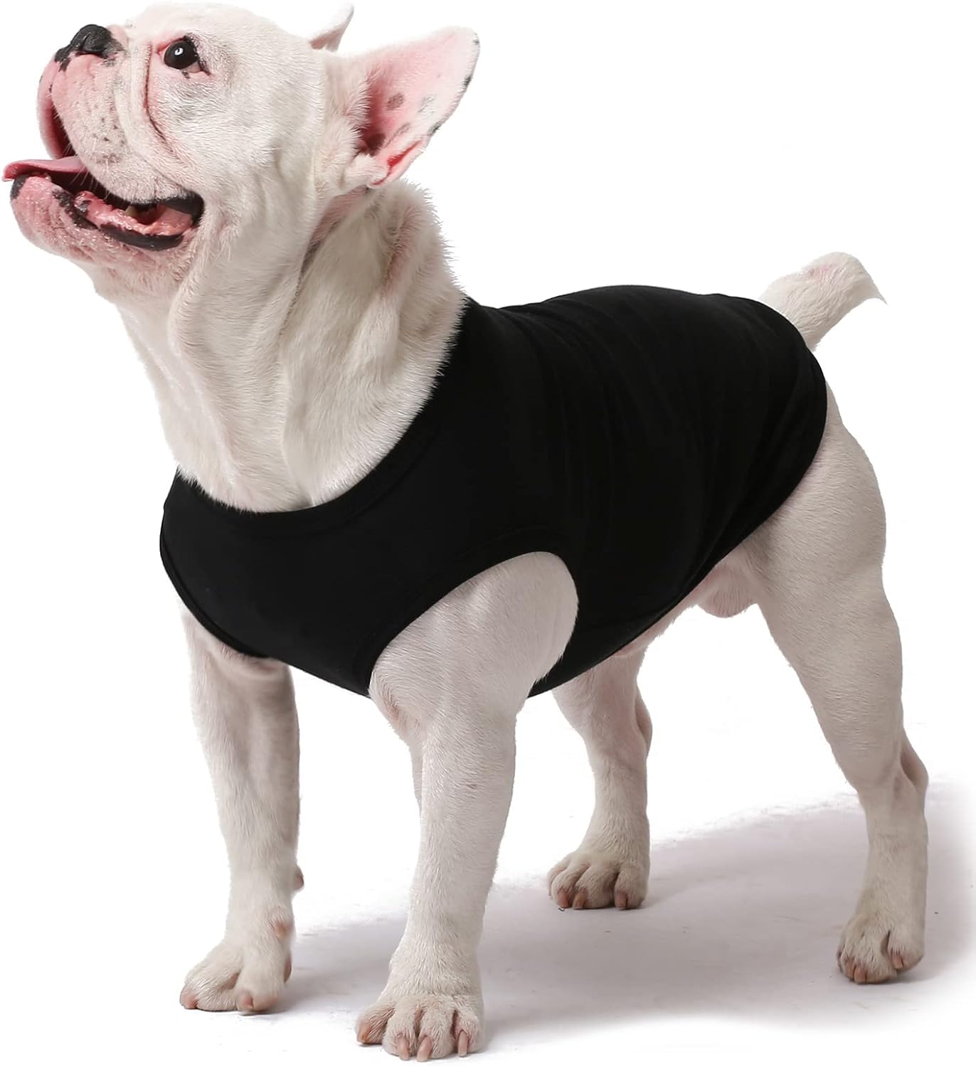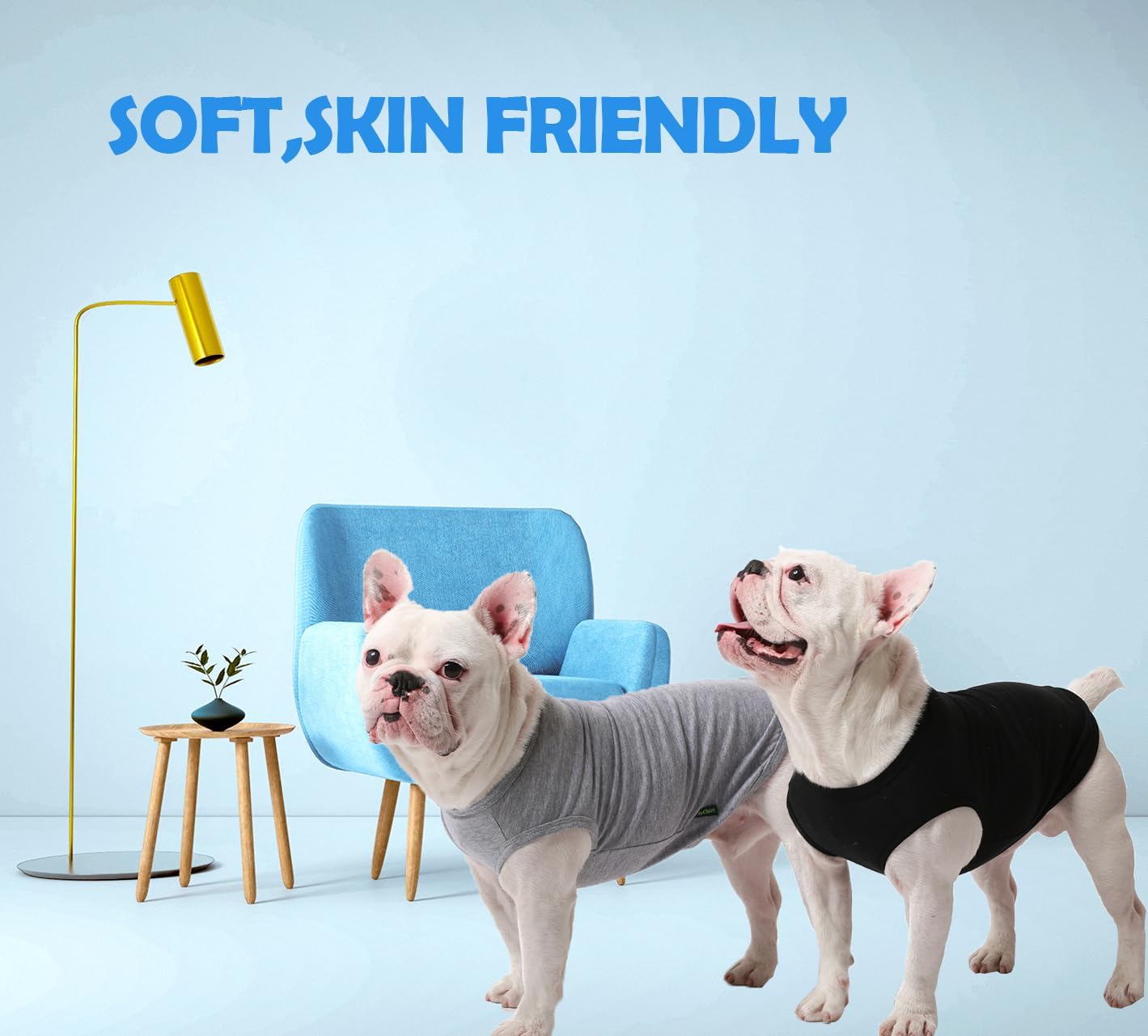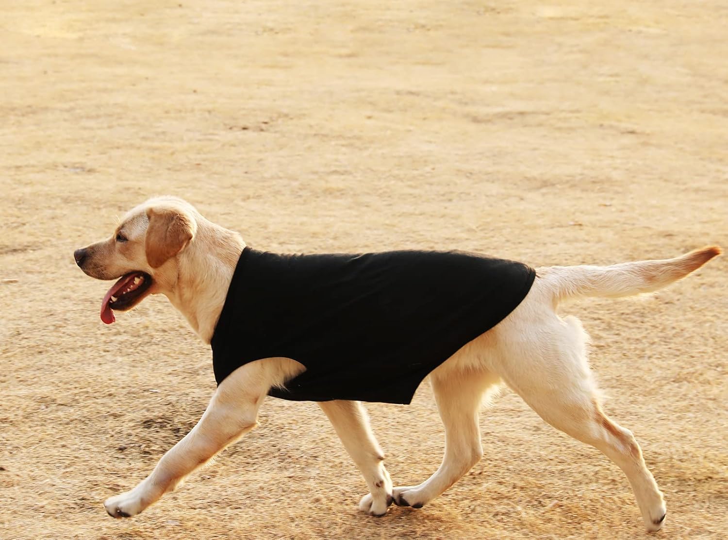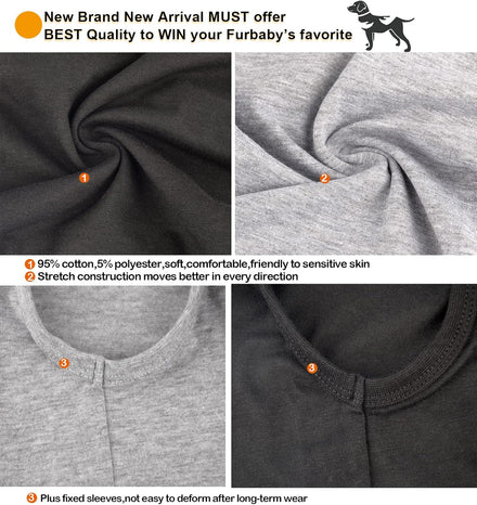 - Design Feature:Dog tshirt is classical blank black and grey color,easy for Papa Mama to find the matching owner clothes or for dog lovers;Unique ribbed elastic neck and cuffs no-sleeves tee shirt is high-fashion than normal dog shirts,reinforced two-needle sewing added durability;Cut higher in the belly for easy potty breaks,easy to put on and take off with pullover design