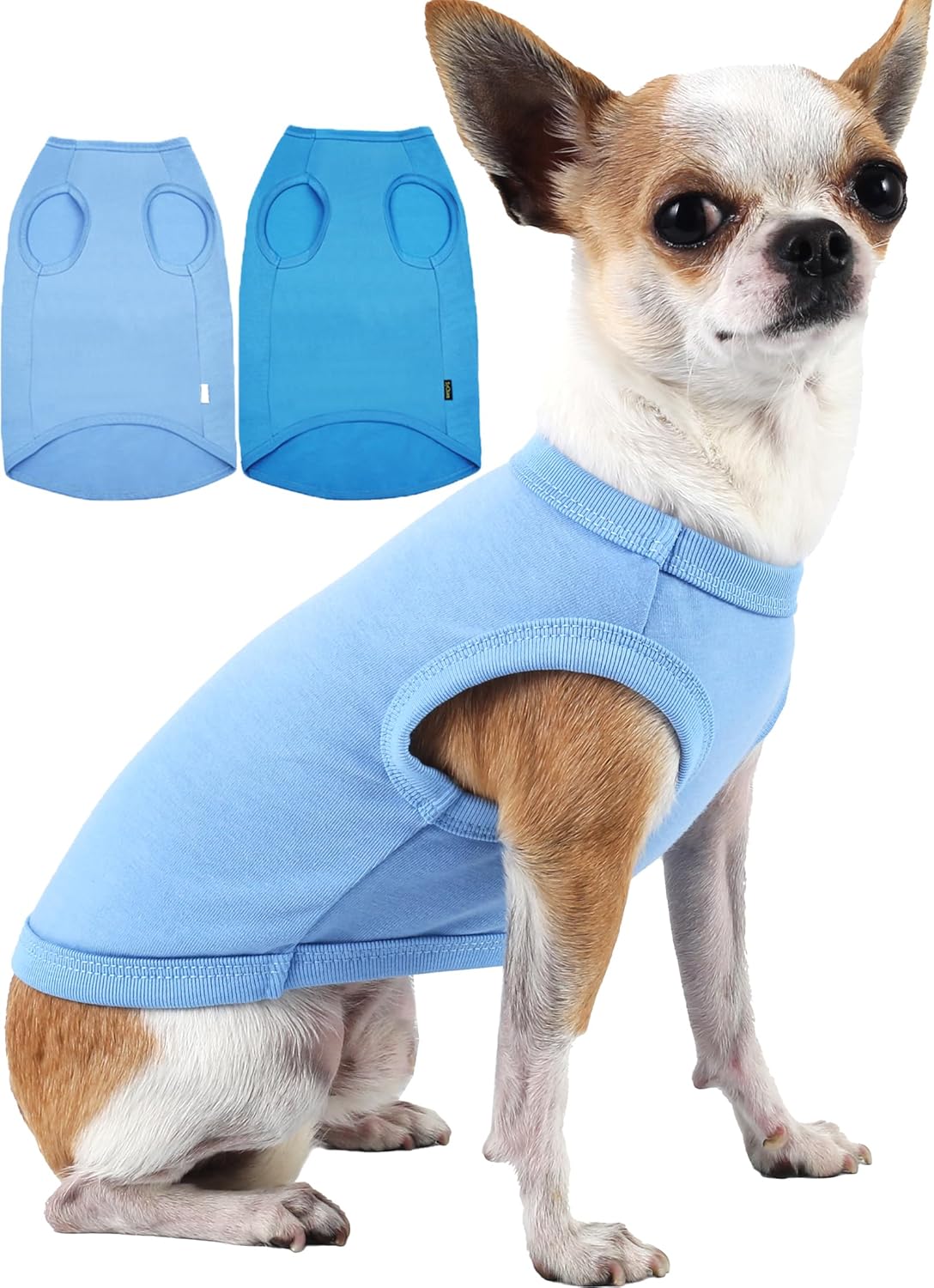 - Quality Material:This dog blank shirts are made with soft,comfy cotton knit fabric,classical layers beautifully under sweaters,coats,jackets in winter and holds its shape when wearing in summer,fall weather;Body is 95% cotton,5% polyester,Rib-knit Neck/Cuffs are 95% Cotton,5% Spandex;Machine washable;This small dog clothes neck pullover have been pre-washed to minimize shrinkage when washed according to care instructions
