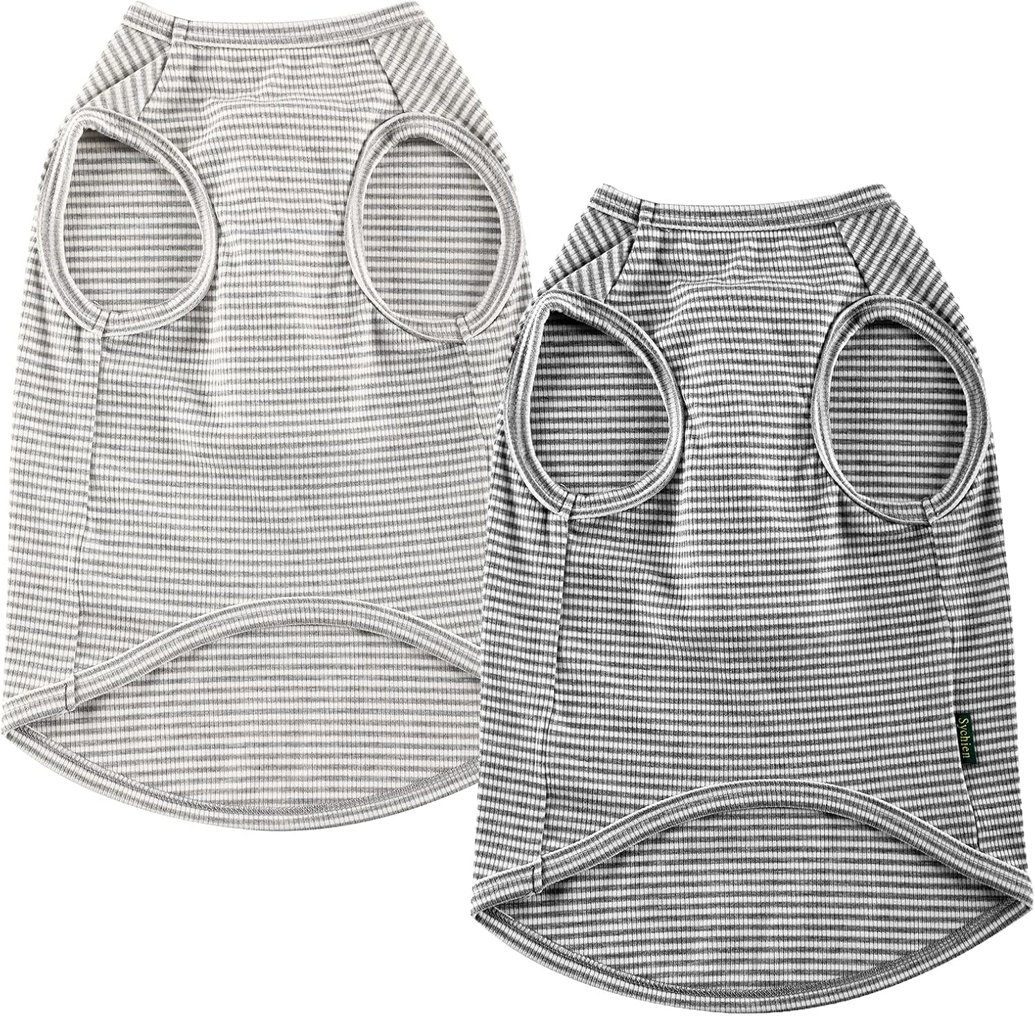 Dog sleeveless blank/striped shirts fits small,medium,large cats and dogs;Soft comfy breathable cotton+polyester fabric;