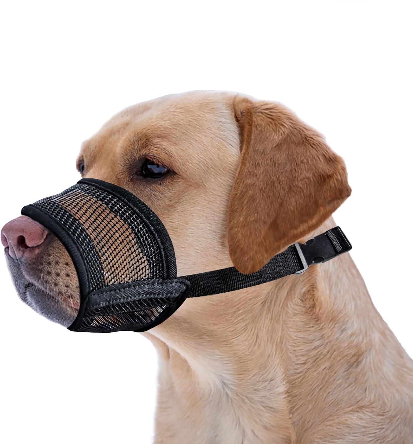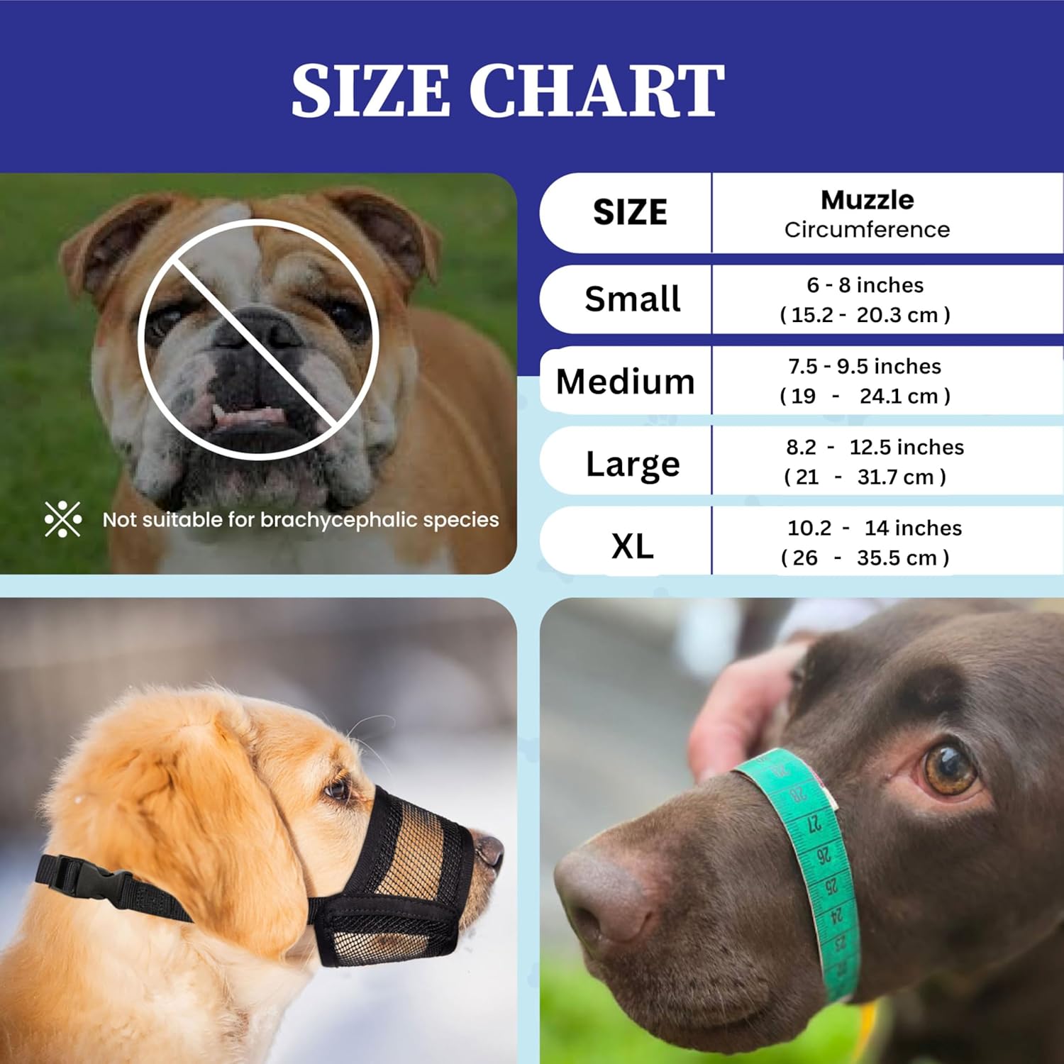 - 𝐁𝐫𝐞𝐚𝐭𝐡𝐚𝐛𝐥𝐞 𝐌𝐞𝐬𝐡 𝐃𝐞𝐬𝐢𝐠𝐧: Dog muzzle for large dogs is made with soft, breathable mesh fabric that allows for optimal airflow, keeps your dog comfortable even during extended use.