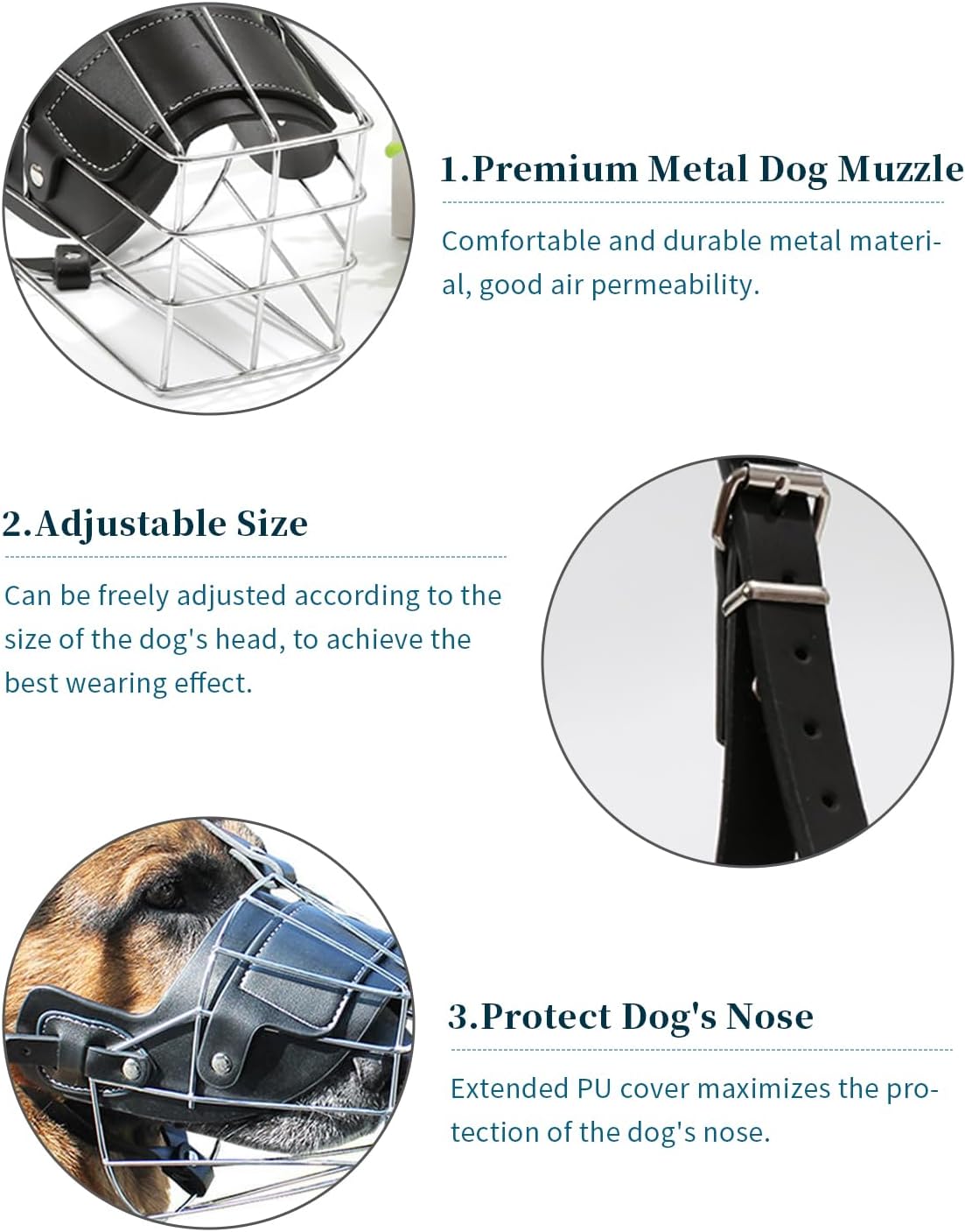 - The German Shepherd Metal Mask muzzle is crafted from durable, lightweight steel for long-lasting use, effectively discouraging biting and aggressive behavior.