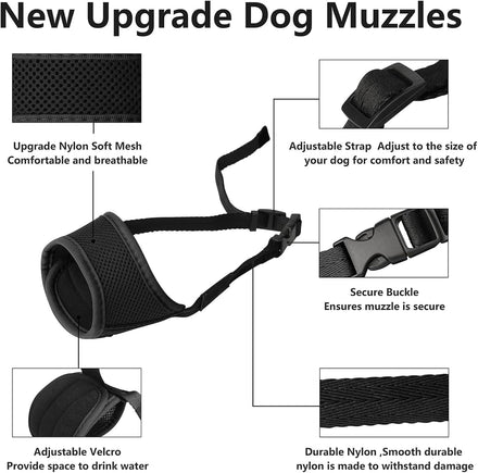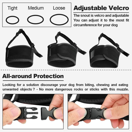 - Adjustable & Secure Fit: The adjustable Velcro straps and collar loop ensure a snug and secure fit for dogs of all sizes. The anti-dropping design prevents the muzzle from slipping off, providing peace of mind during walks or training sessions