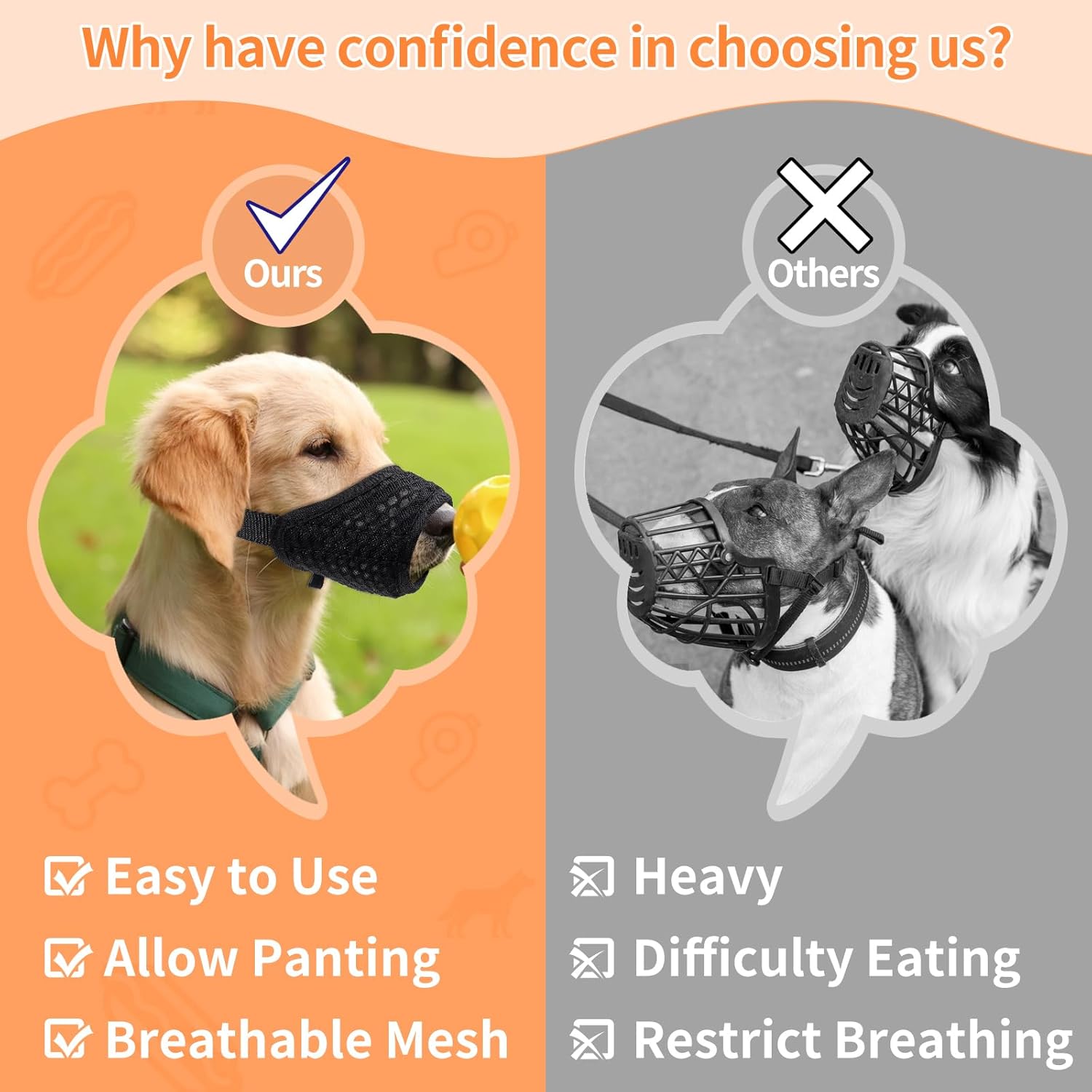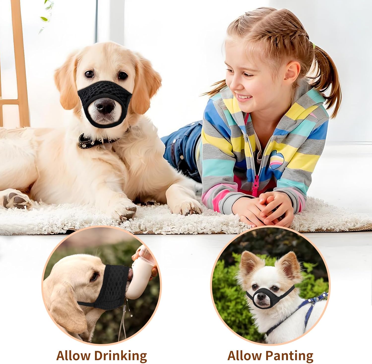 - Anti Biting & Barking: Mesh muzzle for dogs is ideal for vet visits, grooming, and preventing excessive barking and licking. Mesh dog muzzle helps calm your pet and prevent destructive behaviors such as furniture chewing or aggressive reactions.
