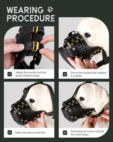 - COMFORTABLE: Made of fine quality leather, Soft Lightweight Durable, and Skin-friendly to dogs. With a cross-weave design, this breathable, durable muzzle is soft on your dog's fur because your pet's comfort always comes first.
