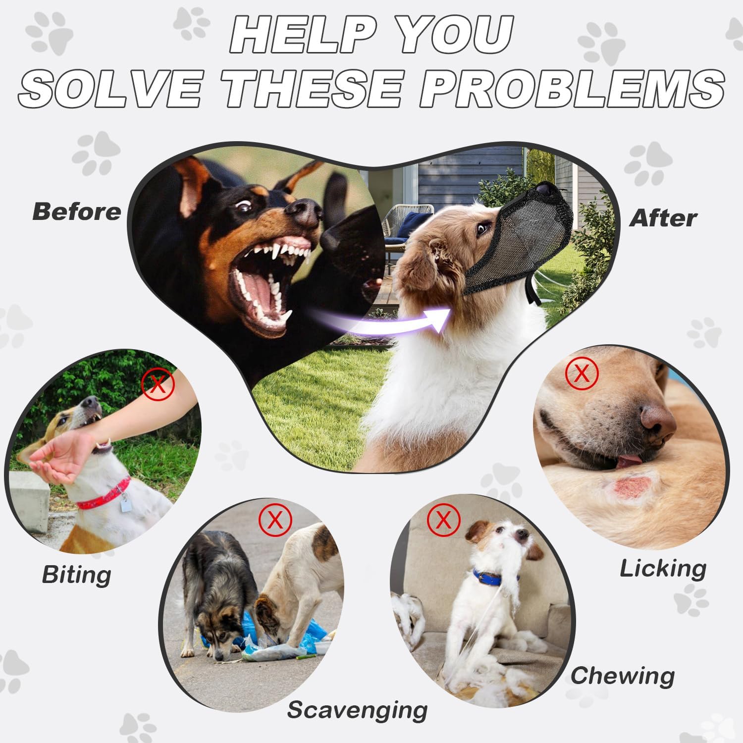 - EFFECTIVE DOG MUZZLE: Still worried about your dog eating randomly while walking? Our basket muzzle for dogs is a perfect solution for anti-scavenging while allowing panting freely. This cage muzzle for large dogs effectively prevents licking, a quick nip, scavenging, or picking up sticks or bigger items, which is helpful for pleasant walks and protects your dog's health. Let's enjoy the outdoor time with your fur baby!