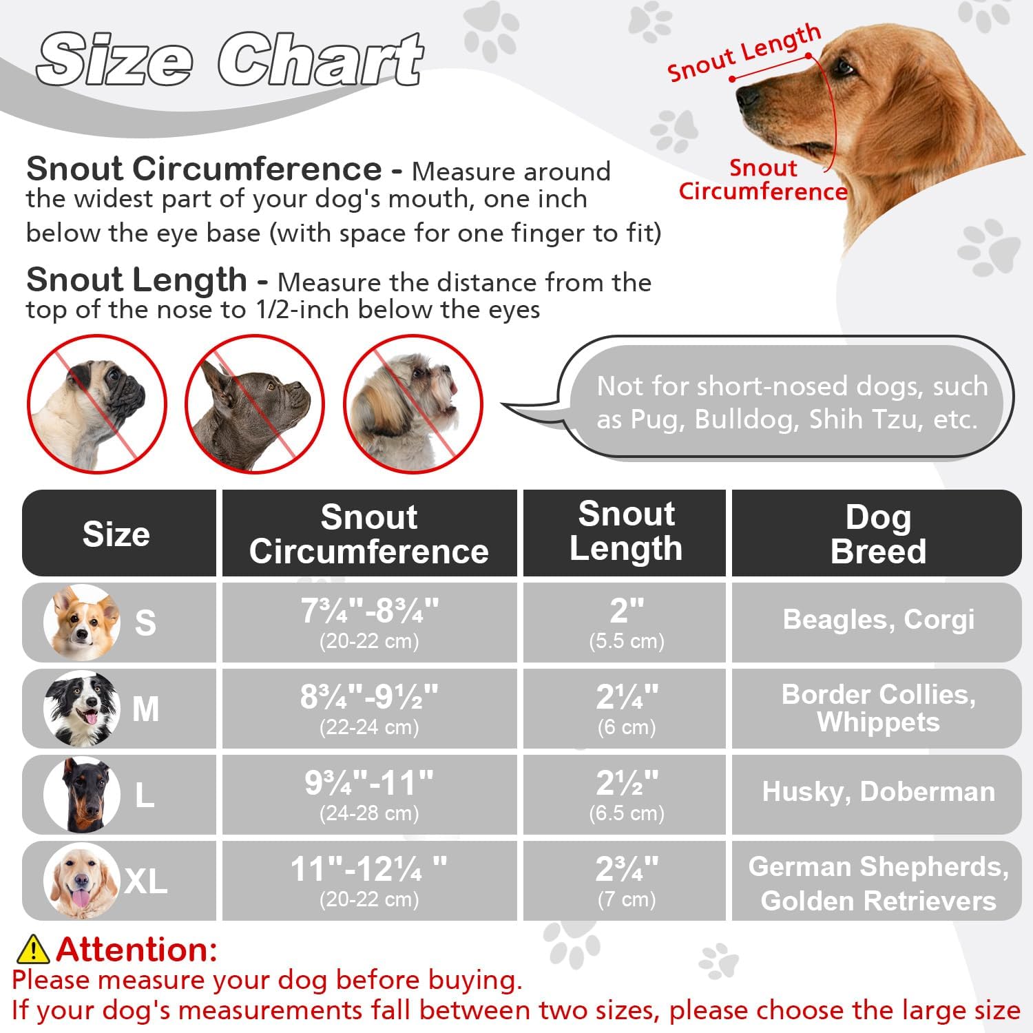 - ATTENTION: Please help your dog get used to the muzzles by rewarding treats repeatedly. And remember that the muzzle should not be used for punishment.