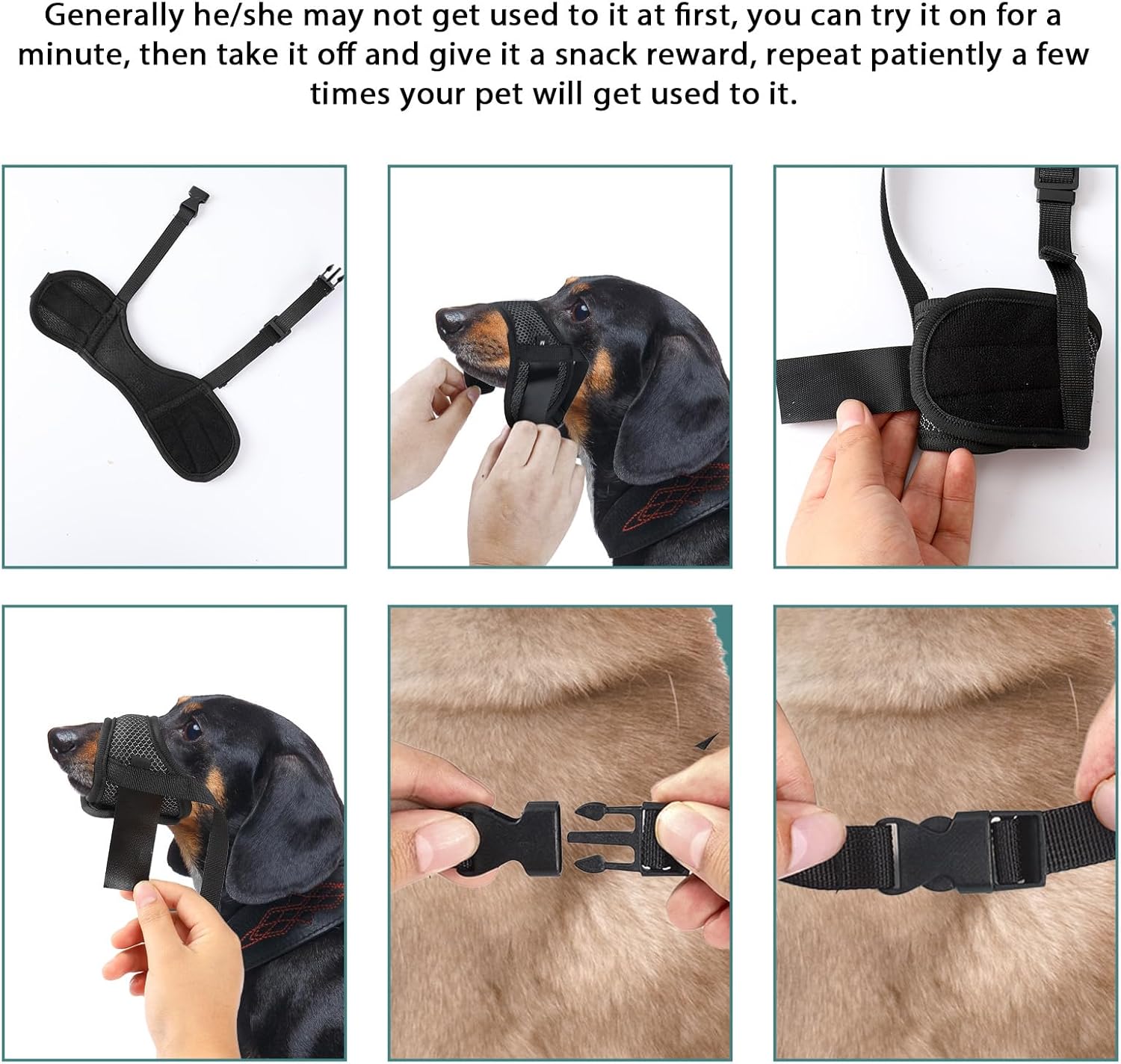 - 【Effective Dog Muzzle】Dog muzzle is an effective tool to limit dog biting, chewing, barking, nipping, and other bad habits. The dog mouth guard is perfect for training veterinary visits, grooming, walking, traveling, and nail trimming, ensuring your dog stays well-behaved and safe.