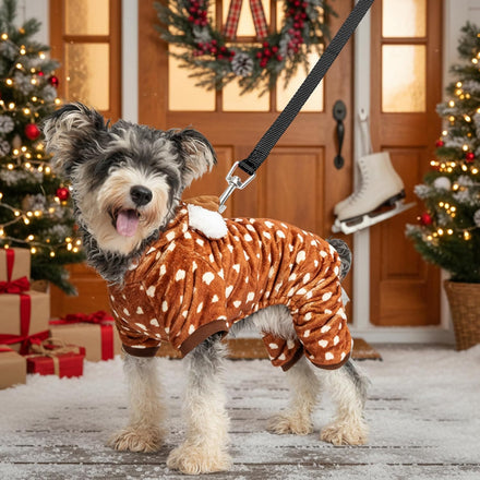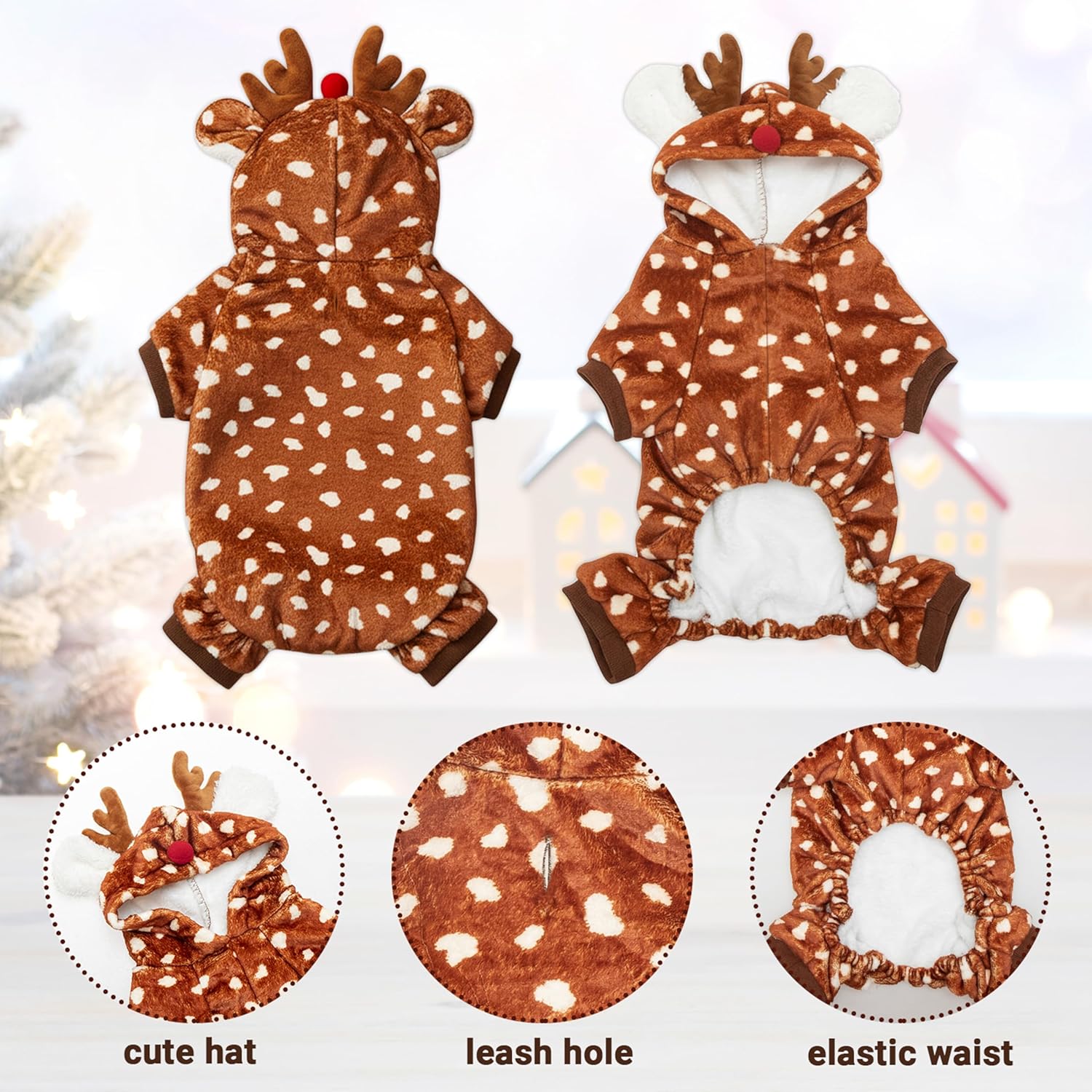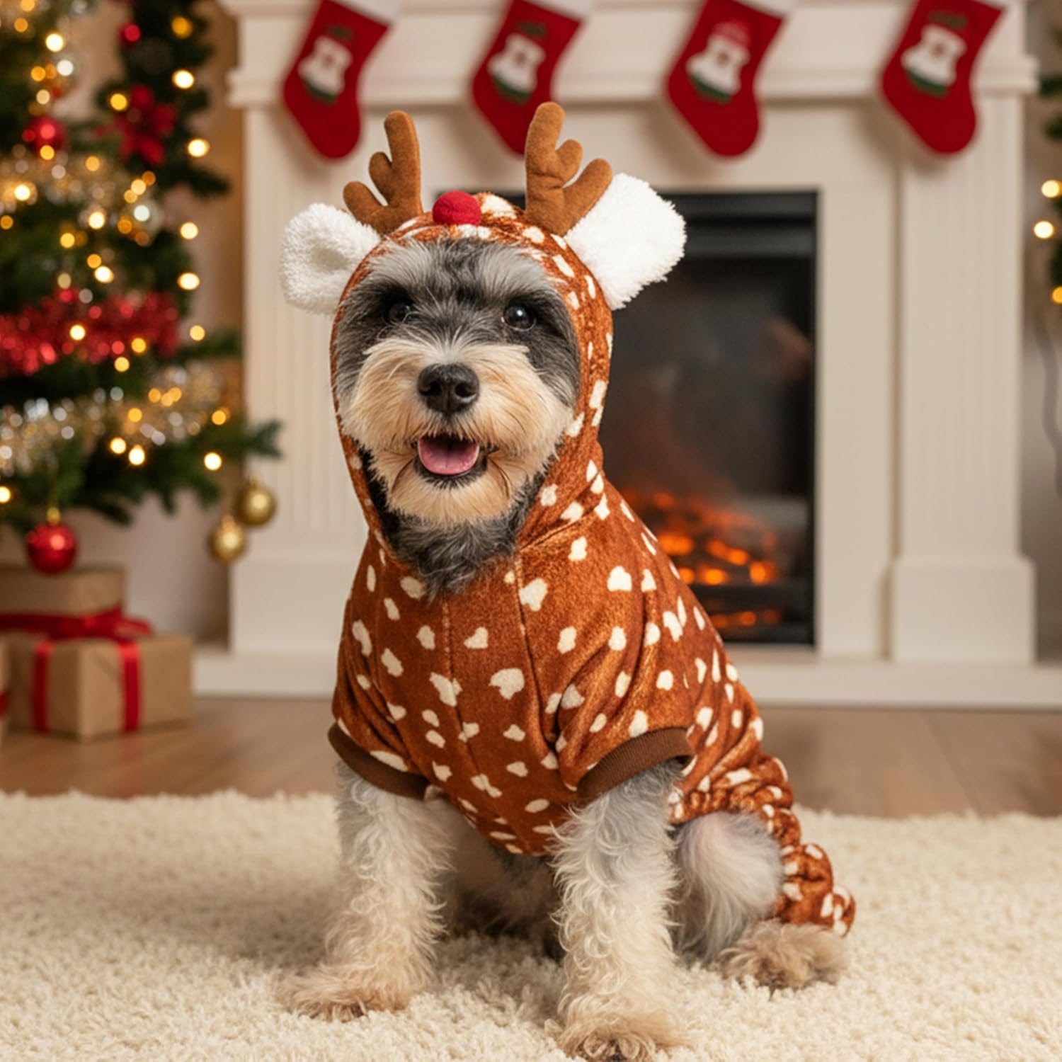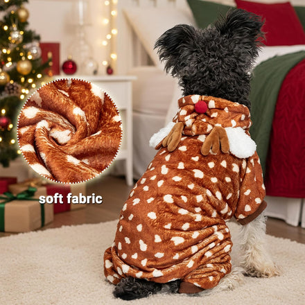 • Stylish and Adorable Pajamas: Transform your puppy into a Christmas reindeer to become the cutest centerpiece of the holiday! The dog pajamas feature a reindeer-spot pattern and are paired with an adorable antler hat, making it seem as if your pup is ready to deliver present with Santa Claus, instantly brightening up the warm Christmas atmosphere in your home.
