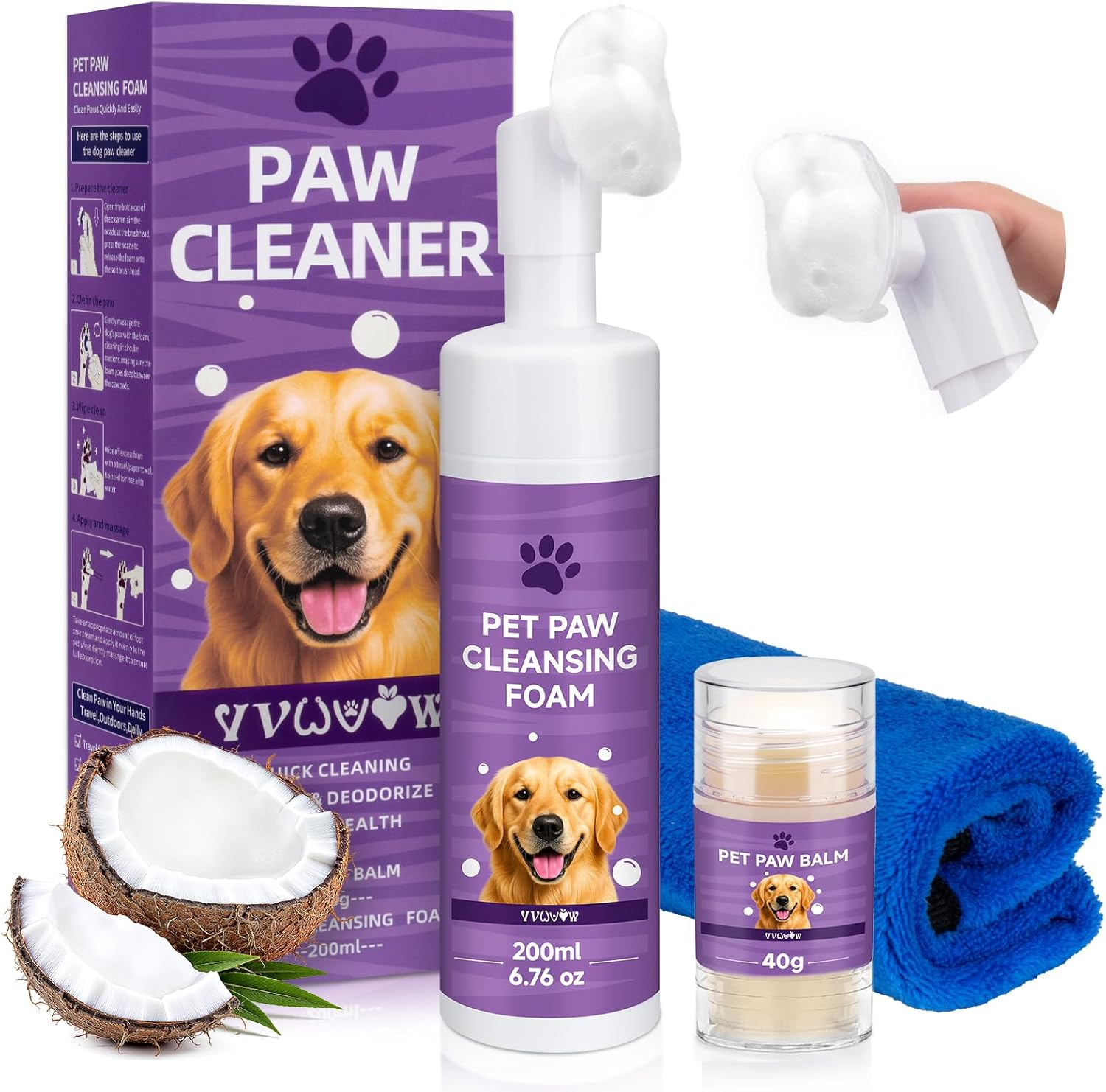 - Safe & Nourishing for All Dogs and Cats – Formulated with gentle, plant-based ingredients including coconut, pomegranate juice, broccoli seed oil, and grape seed oil, our Puppy Paw Cleaner nourishes and soothes while cleansing. Free from sulfates, parabens, drying alcohols, artificial fragrances, dyes, or harsh chemicals. Suitable for small, medium, and large breeds, as well as kittens and cats. Includes Dog Paw Balm to moisturize and restore dry or cracked paws & a soft towel for drying, making it a complete 3-in-1 paw care kit.