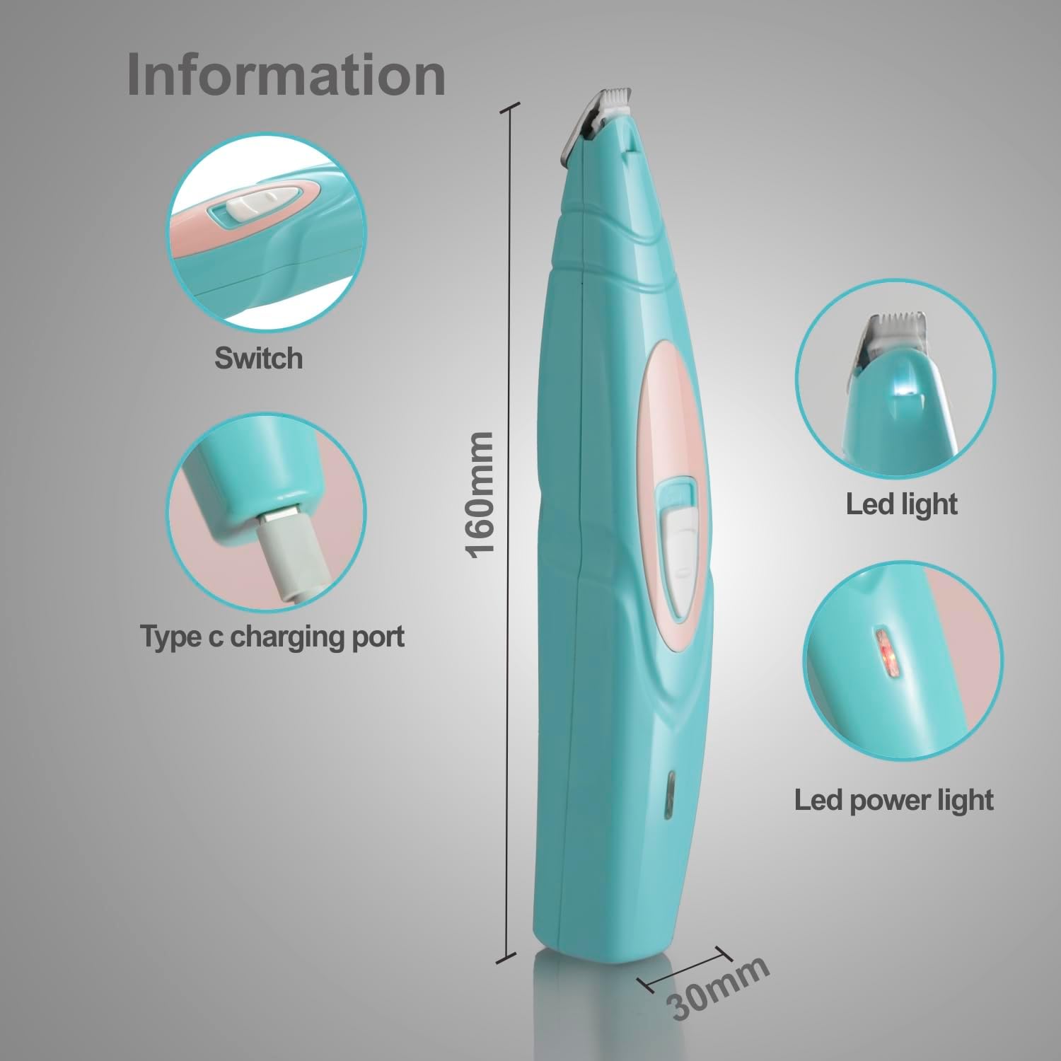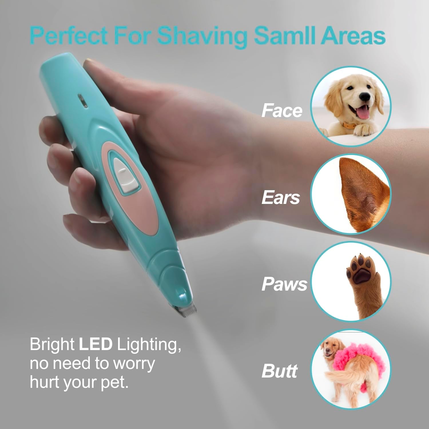 - 【Dog Claw Trimmer with LED Light】With LED light for safe and clear trimming of small areas of pet hair, this trimmer features a precise 11mm ceramic blade that prevents over-cutting, perfect for detailed work on paws, eyes, ears, face, and hindquarters.