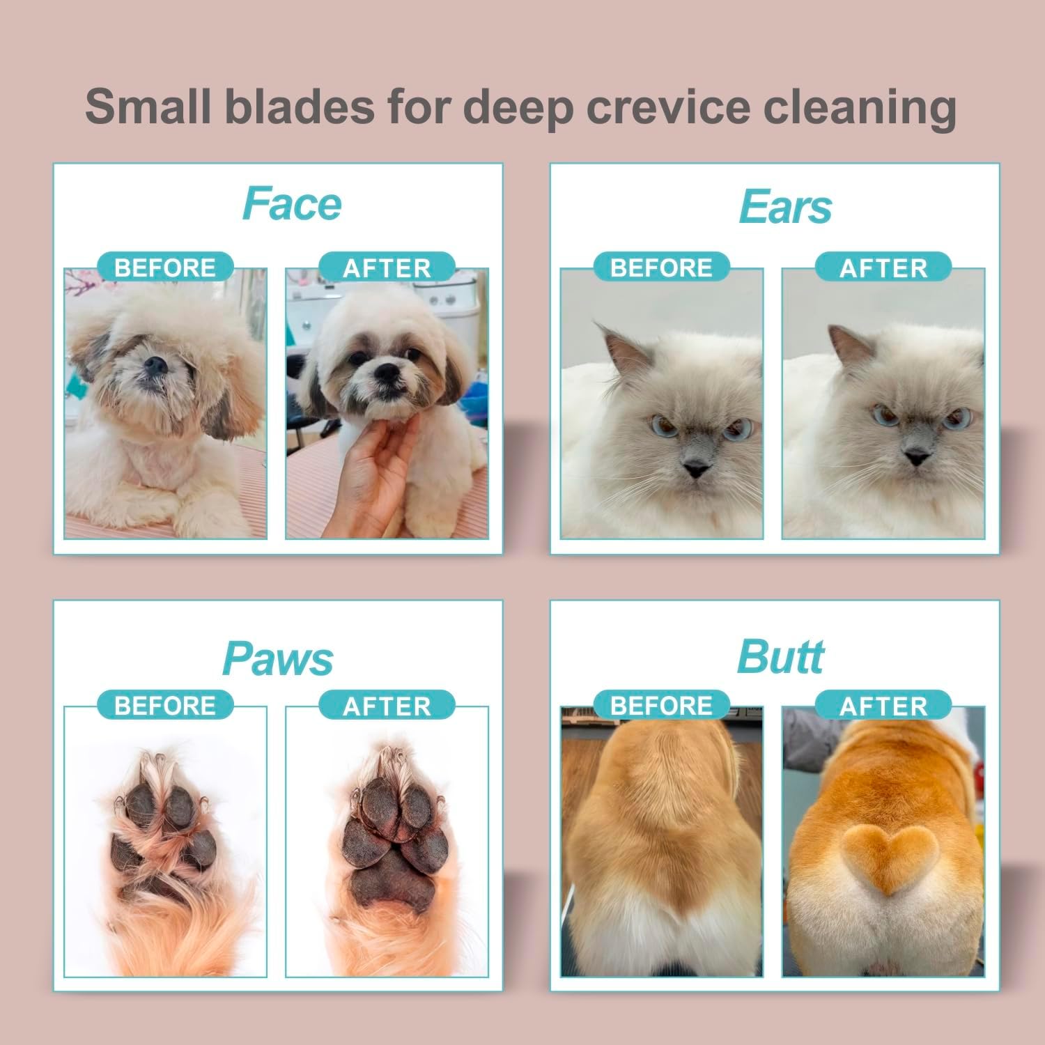 - 【Cordless Rechargeable Pet Trimmer】Cordless Trimmer with a high-capacity Type-C battery, offering up to 90 minutes of runtime on a full charge. The cordless design allows for free movement in any direction, making it easy to trim small areas of your furry friend's coat and create beautiful shapes.